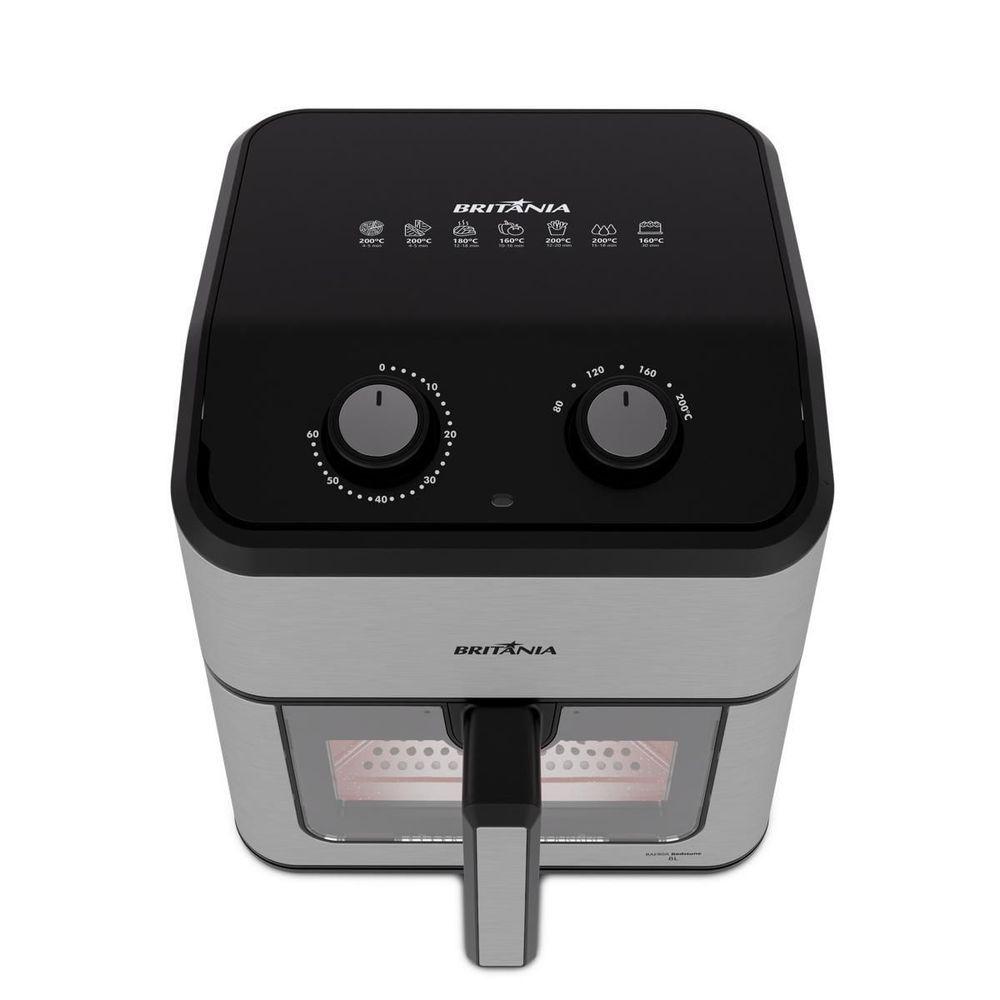 Air Fryer Britânia 8L Redstone Visor Glass BAF80A 110VExperimente o sabor da praticidade com a Air Fryer Britânia 8L Redstone Visor Glass BAF80A. Desenvolvida para quem busca eficiência na cozinha sem abrir mão do sabor, a Air Fryer combina potência, estilo e funcionalidade. Seja no preparo de refeições completas ou na agilidade do dia a dia, você transforma a forma de cozinhar com mais leveza e autonomia. Com capacidade de 8 litros, a Air Fryer Britânia atende desde porções individuais até refeições para toda a família. Sua função 3 em 1 permite fritar sem óleo, assar e reaquecer com qualidade superior. A tecnologia Air Flow 360º garante cozimento uniforme, deixando seus pratos mais crocantes, suculentos e saudáveis, tudo isso com rapidez e economia de tempo.O design inteligente da BAF80A conta com visor Glass e luz interna, que oferecem controle visual total durante o preparo, mesmo com o cesto fechado. O revestimento Redstone evita que os alimentos grudem e facilita a limpeza, ideal para quem deseja praticidade sem esforço.Valorize sua rotina com a potência de até 2000W da Air Fryer 3 em 1 da Britânia. Torne cada refeição mais nutritiva, bonita e prazerosa. Adquira a sua Air Fryer Britânia e sinta a diferença no sabor, no tempo e no cuidado com sua alimentação. - Capacidade da cuba: 8L- Cesto Quadrado- Potência: 1900W (127V) e 2000W (220V)- Controle de temperatura: 80°C - 200°C- Fundo removível revestido com antiaderente REDSTONE- Cuba revestida com antiaderente REDSTONE- Luz indicadora de funcionamento- Desligamento automático- Base antiderrapante- Sistema de proteção contra sobreaquecimento- Pode ser levada à lava-louças- Comprimento do cabo de alimentação: 90cm exposto- Timer de 60 minutos- Acabamento em Inox- Painel mecânico.Especificações Técnicas:Marca: BritâniaTipo: Sem óleoPotência (W): 19000W (127V) / 2000W (220V)Garantia (Dias): 360Função timer: SimModelo: BAF80AEstado: NovoTipo de controle: AnalógicoCor: Preto InoxCesto antiaderente: SimCapacidade: 8LControle de temperatura: 80°C a 200°CFundo Removível: SimCesto removível: SimAltura do produto: 32,5 cmLargura do produto: 30,3 cmComprimento do produto: 37,8 cmPeso do produto: 5,303 kgAltura com embalagem: 36,8 cmLargura com embalagem: 39 cmComprimento com embalagem: 33,5 cmPeso com embalagem: 6,284 kgObservação: Somente faturamos para o nosso consumidor final, ou seja, não faturamos pedidos para CNPJ por este portal de vendas;