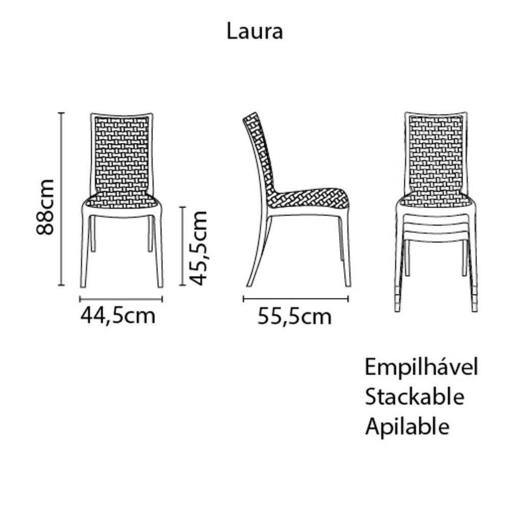 Cadeira Tramontina Laura VermelhaA cadeira Laura não anda desacompanhada, quando combinada com a mesa Laura formam uma dupla perfeita. A textura da cadeira lembrando ratan, sinaliza um traço de personalidade marcante e charme para o seu ambiente.Recomendações de Uso:- Antes do uso: Antes de utilizar o , remova as eventuais limpeza desse produto deve ser feita com água e sabão neutro auxiliada por esponja macia ou tecido macio apropriado. O uso de produto químicos esponjas abrasivas e outros equipamentos como lava-jatos não são recomendados.- Modo de uso: Evite exceder o limite de peso estipulado para que não haja acidentes ou não comprometer a integridade da peça. O ou movimentação desse produto deve ser feito com cuidado. Não subir no assento, evite jogar-se sobre a cadeira ou apoiar-se somente nas duas pernas traseiras: evite acidentes. Para que o produto mantenha sua beleza e tenha longa vida útil, é recomendado que ele seja guardado quando estiver fora de uso.- Foto meramente ilustrativa.Informações Adicionais:- Poltrona monobloco, empilhável, leve, resistente e com design diferenciado.- Produzida com tecnologia de ponta, alta qualidade e processos controlados.- Produto injetado com fibra de vidro e aditivos.- Esse produto foi submetido á rigorosos testes de qualidade. Todas as possíveis simulações do uso correto do produto são consideradas para esses testes.- Esse produto é aprovado de acordo com a nova norma para cadeiras monobloco.- Esse produto é da categoria B (uso irrestrito).- Produto certificado de acordo com a Portaria Inmetro Nº342/2014.- Possui 1 (um) ano de garantia contra de fabricação- Textura Rattan que é uma tendência da moda.