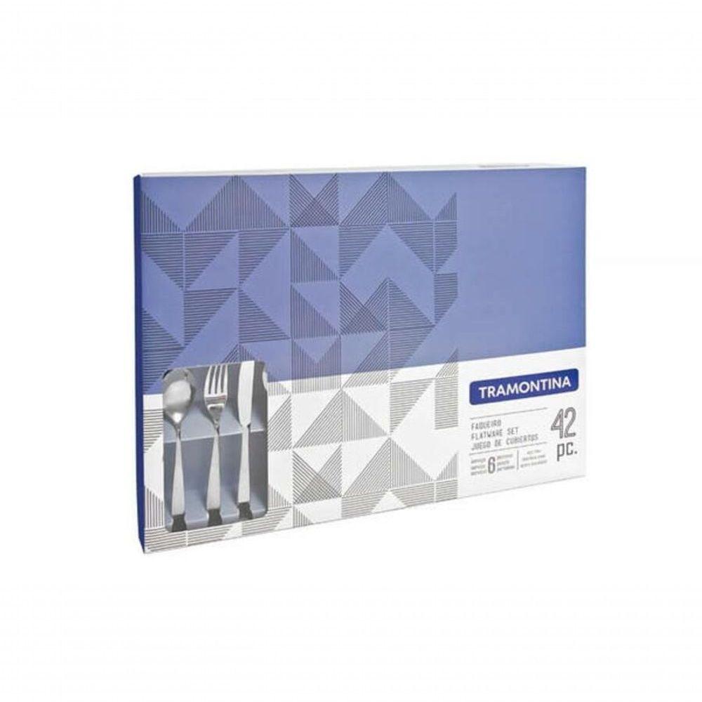 Faqueiro Tramontina Cosmos Em Aço Inox Com Facas Para Churrasco 42 PeçasAs colheres que acompanham o faqueiro possuem bojo em formato simétrico e bordas cuidadosamente arredondadas. Os garfos com dentes polidos na parte interna, com formato apropriado para a boca e bordas arredondadas proporcionam maior conforto no uso. As facas totalmente temperadas, garantem maior durabilidade no fio de corte e maior resistência à corrosão. Elas ainda não riscam as porcelanas. O faqueiro traz também facas especiais para churrasco, completando sua versatilidade e bom gosto. Os talheres ainda dão um toque de estilo para sua mesa, devido ao acabamento em brilho. São talheres muito especiais para as tarefas do dia-a-dia.Recomendações de Uso:- Durante a lavagem, use apenas sabão ou detergente e uma esponja macia. Outros tipos de produtos, como palha de aço, poderão riscar ou prejudicar o brilho dos talheres.- Enxágue bem cada peça a fim de remover totalmente os resíduos dos produtos de limpeza, pois, por serem abrasivos, podem prejudicar o inox.- Sempre que possível, use água quente, pois renova o brilho do talher.- Após a lavagem, enxugue imediatamente os talheres, caso contrário, as substâncias químicas da água (cloro) poderão causar manchas.- Evite atrito entre os talheres durante o processo de lavagem e no armazenamento, para mantê-los sem riscos.- Evite o das peças com superfícies quentes. Elas provocam a descoloração do produto.- Não guarde os talheres em locais úmidos. A umidade também provoca manchas.- Ao usar a lava-louça, recomendamos retirar os talheres logo que tenha terminado o ciclo ??enxaguar??, a fim de que sejam secados manualmente.Informações Adicionais:- Peças totalmente feitas de aço inox, altamente duráveis, mantêm suas características , preservando a beleza, a higiene e a durabilidade do material.- Colheres com bojo em formato simétrico e bordas cuidadosamente arredondadas.- Garfos com dentes polidos na parte interna, com formato apropriado para a boca e bordas arredondadas para proporcionar maior conforto no uso.- Facas totalmente temperadas, que garantem maior durabilidade no fio de corte e maior resistência à corrosão, e por suas características de temperabilidade, não riscam as porcelanas.- Acabamento em brilho.- Próprias para uso diário combinam com qualquer ambiente.- Podem ser lavadas diariamente na máquina de lavar louças.,- Imagem meramente ilustrativa.