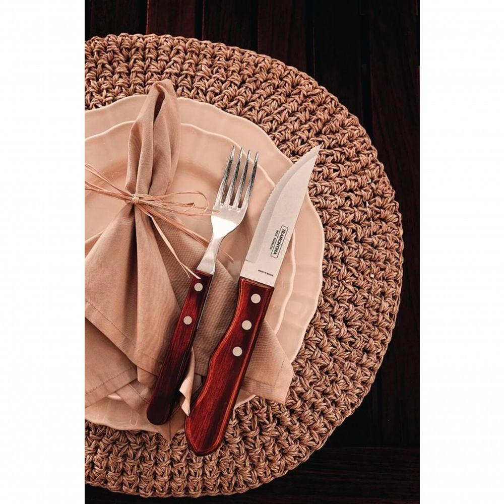Jogo Para Churrasco Jumbo Tramontina Polywood Vermelho 4 PeçasTalheres de qualidade deixam sua mesa muito mais convidativa. Um exemplo é a linha Polywood que, com seus cabos de madeira tratada, faz bonito em encontros mais informais.Recomendações de Uso:Antes do uso:Antes de utilizar o , remova as eventuais etiquetas e lave-o com água e cuidado ao manusear produtos cortantes e perfurantes e mantenha-os fora do alcance de crianç garantir a durabilidade dos produtos, recomenda-se secá-los bem após a lavagem, mesmo sendo em máquina de lavar louças.- Foto meramente ilustrativa.- Embalagem blister.Informações Adicionais:- Facas: lâminas com maior durabilidade do fio devido ao tratamento térmico.- Garfos: a espessura do aço e a estampagem das lâminas garantem maior resistência aos produtos, evitando deformações.- Cabos de madeira com tratamento especial, oferecendo maior durabilidade às peças.- Resistentes a impactos e a altas temperaturas. - Podem ir à máquina de lavar louças. - Permanecem bonitos por muito mais tempo.