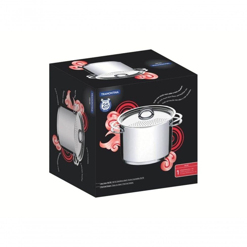 Espagueteira Tramontina Solar 24cm Em Aço InoxA Tramontina usa a mais alta tecnologia para produzir panelas de aço inox com fundo triplo. São duas camadas de aço inox envolvendo uma camada de alumínio. Dessa forma, o calor da chama se distribui por igual, deixando os alimentos muito mais macios e saborosos. Além disso a comida cozinha muito mais rápido, o que acaba gerando economia.Recomendações de Uso:Antes do uso: Antes de utilizar o , remova as eventuais etiquetas e lave-o com água quente e de uso: Alguns alimentos que possuem amido, como massa e arroz, poderão deixar manchas na parte interna do cozi-vapore durante o ós o uso: Para remover facilmente as manchas, passe um pano umedecido com suco de limão ou vinagre, Evite deixar alimento no cozi-vapore por muito tempo o sal também pode provocar manchas. Para que o cozi-vapore de aço inox fique sempre bonita e com brilho, recomendamos que seja lavada somente com detergente e esponja. A Tramontina desenvolveu uma pasta especial para polir e remover manchas nos produtos de aço inoxidável, que está disponível nos principais pontos de venda. (94537000)Depois da lavagem, sempre que possível, enxágue o cozi-vapore com água quente e seque-a imediatamente, para que ela mantenha o brilho , pois o cloro e as substâncias contidas na água podem deixar manchas no cozi-vapore. Não deixe o cozi-vapore vazia sobre uma fonte de calor. Deixe o cozi-vapore quente somente em superfícies resistentes ao calor.- Foto meramente ilustrativa- Embalagem litografadaInformações Adicionais:- Totalmente feita de aço inox, por isso não solta nenhum resíduo nos alimentos, mantendo-os saudáveis. - Altamente durável, mantém as características , preservando a beleza, a higiene e a durabilidade do material. - O fundo triplo (aço inox + alumínio + aço inox) distribui o calor uniformemente, proporcionando um cozimento mais rápido e uniforme, economizando energia e deixando os alimentos aquecidos por mais tempo. - Possui design diferenciado e moderno, com acabamento em alto brilho. - Tampa com encaixe perfeito e furos na mesma para escorrer a água da massa. - Para fechar a tampa da espagueteira Solar posicione as 4 garras sobre os encaixes e gire a tampa até que a parte dos furos fique ao lado oposto das alças. - Para escorrera água da massa, segure a panela pelas alças e vire-a. - Pode ser lavada diariamente na máquina de lavar louças.