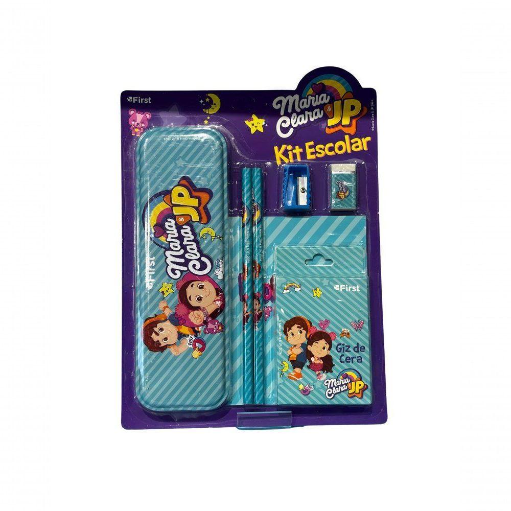 Kit Escolar Maria Clara E Jp Estojo Lapis Giz De Cera Caderninho Apontador Borracha
