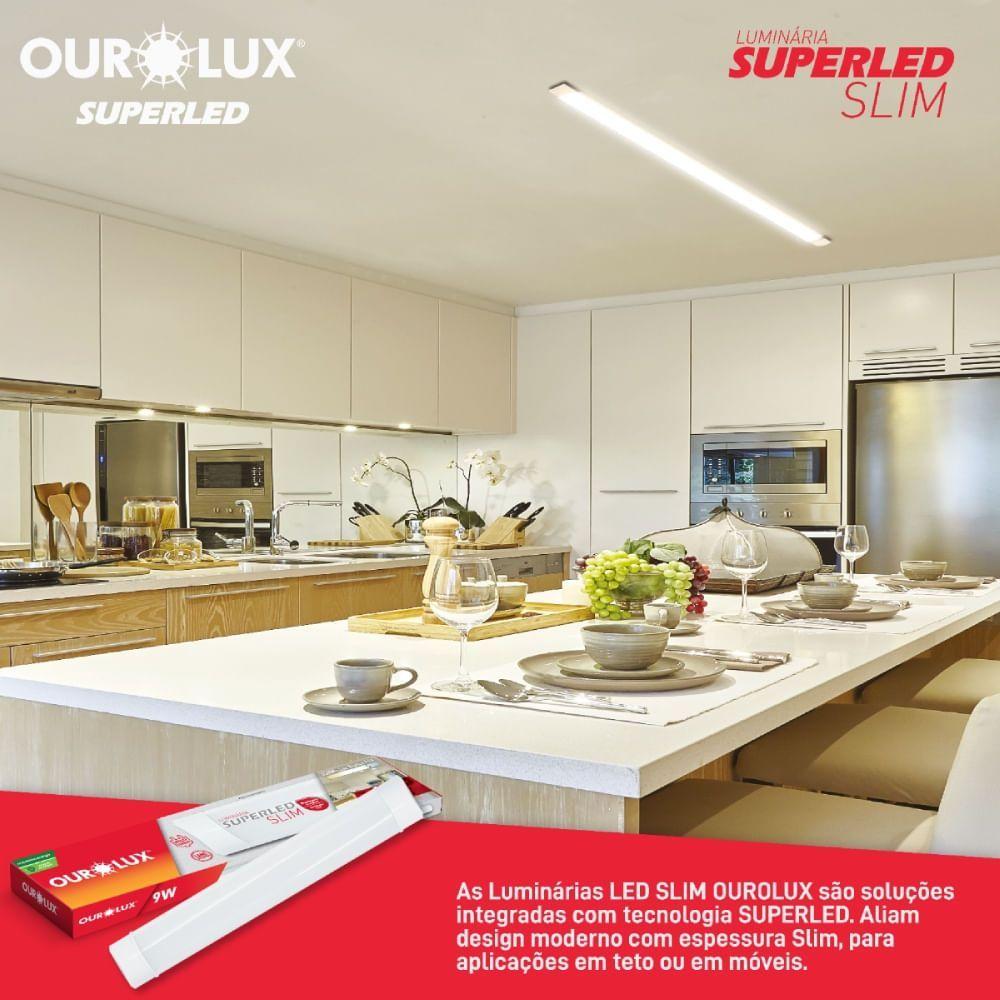 Luminária Superled Slim 30cm 9 Watts 3000k Bivolt - 5898b - Ourolux Luminaria Led Slim 30cm 9w 3000k Bivolt