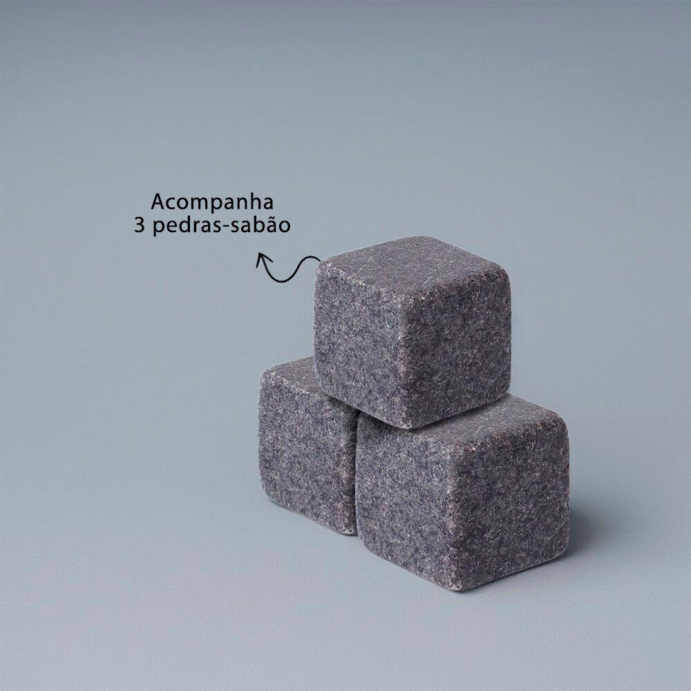 Kit Elegância Para Whisky: Copo, Pegador De Gelo E Cubos De Pedra-sabão Em Caixa Premium
