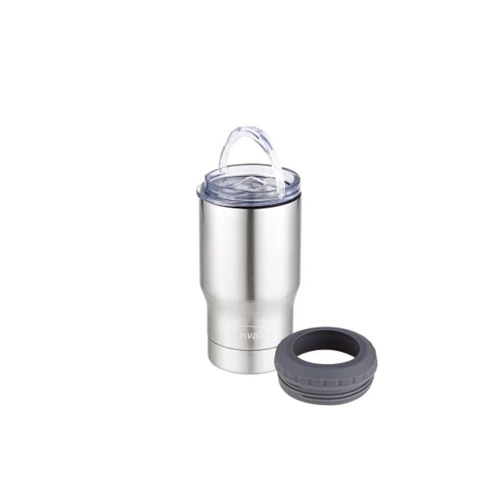 Copo Térmico 4 Em 1 Com Tampa Porta Latas E Long Neck Plasvale Inox