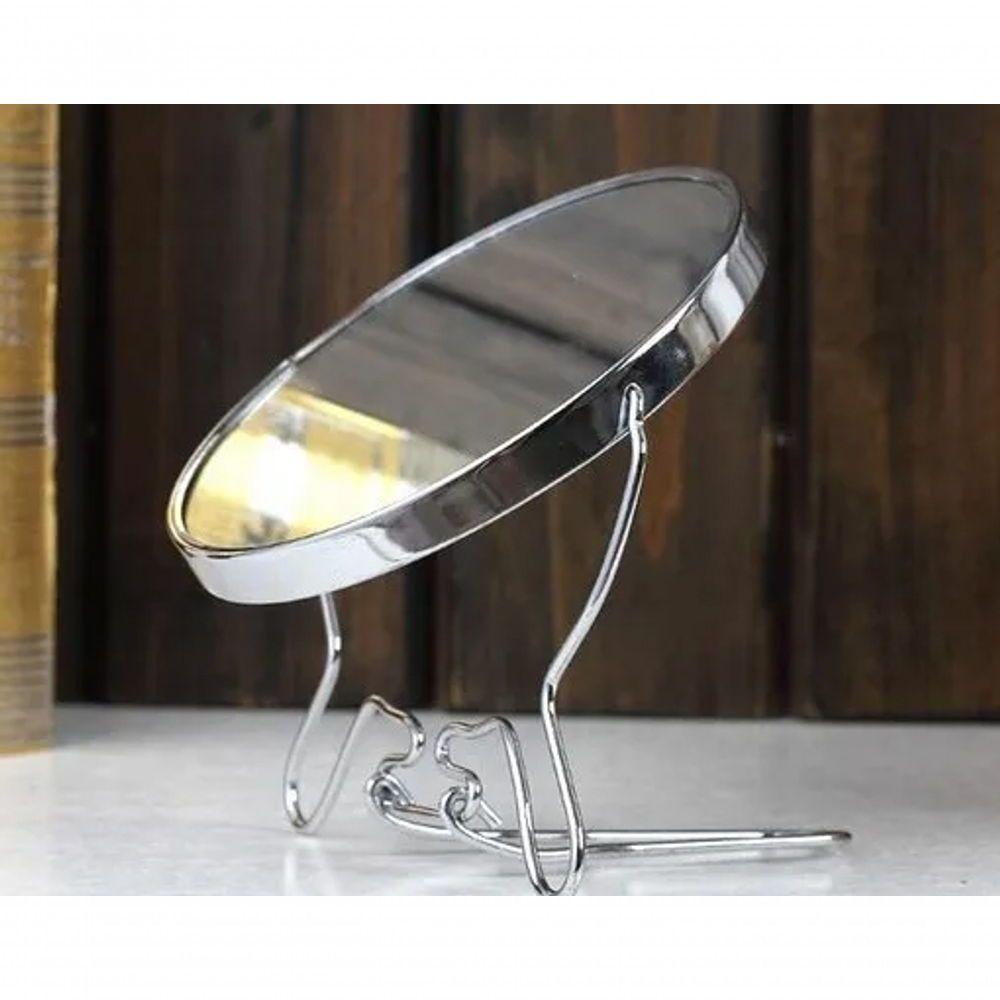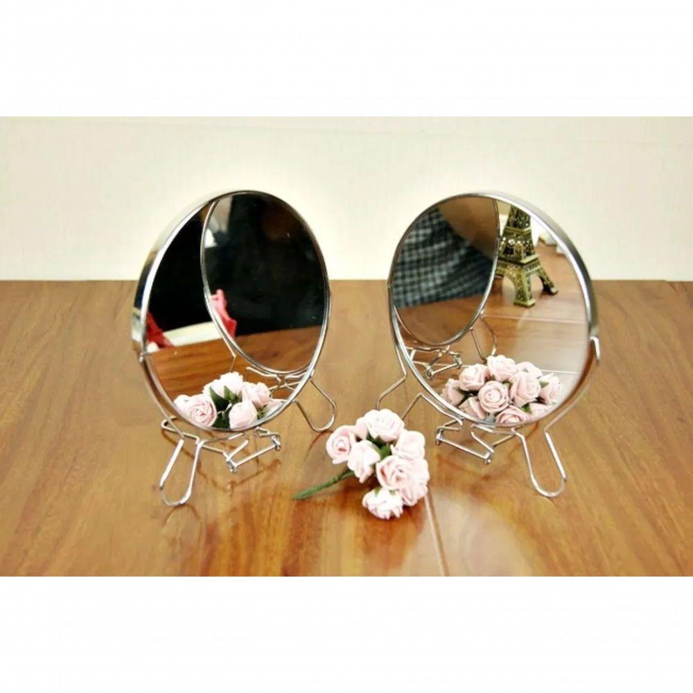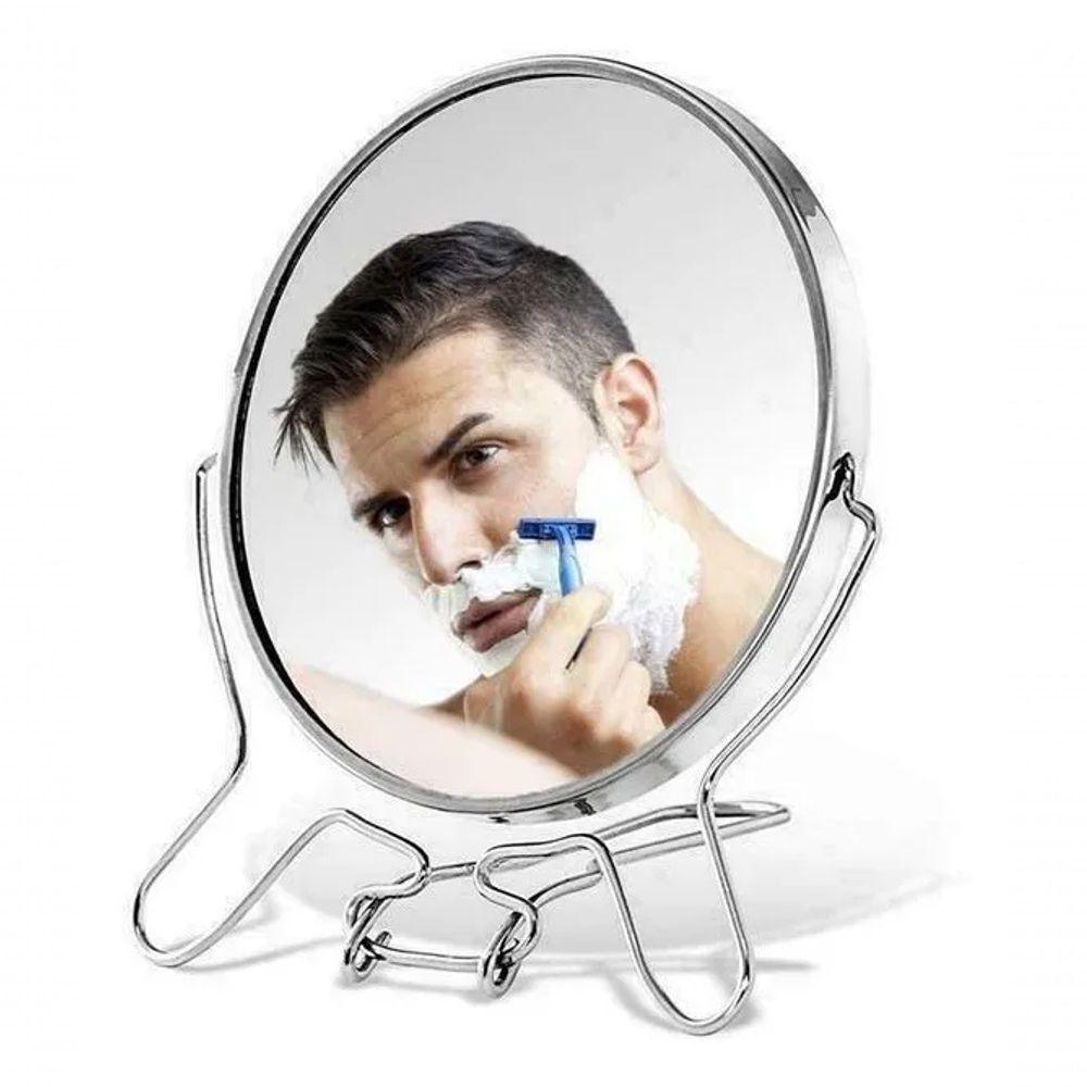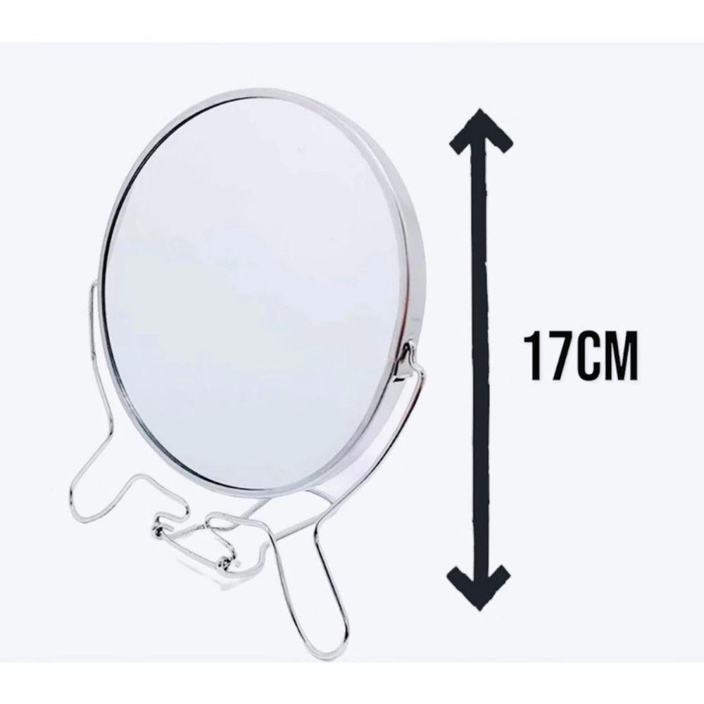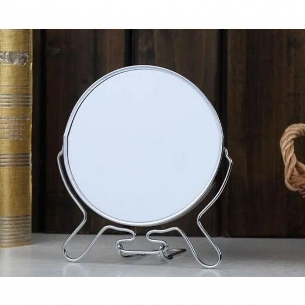 Espelho Mesa Dupla Face Aumento Giratório Redondo MaquiagemEspelho Dupla Face com Suporte Giratório 360° – Compacto, Elegante e Perfeito para Sua Rotina de BelezaAdicione mais praticidade e sofisticação ao seu dia a dia com o Espelho Dupla Face com Suporte Giratório 360°. Com design clássico e funcional, ele é ideal para maquiagem, cuidados com a pele, barbear ou qualquer rotina de beleza, oferecendo visão completa e precisão em todos os detalhes.Seu formato redondo e moldura prata traz um toque de elegância para sua bancada, penteadeira ou mesa. Compacto, mas com ótimo campo de visão, possui 14 cm de diâmetro e 17,6 cm de altura, sendo fácil de posicionar sem ocupar muito espaço.O sistema dupla face com rotação de 360° permite alternar entre espelho comum e aumento, facilitando tanto a visualização geral quanto os detalhes mais delicados. Feito em vidro espelhado de alta qualidade e estrutura metálica, oferece durabilidade e estabilidade no uso diário.Benefícios do Produto:Design sofisticado com moldura metálica em prataEspelho dupla face: visão normal + ampliaçãoSuporte giratório 360° para ajustar o ângulo idealCompacto, portátil e fácil de posicionarReflete bem a luz ambiente, mesmo sem iluminação própriaIdeal para uso doméstico ou profissionalEspecificações Técnicas:Diâmetro: 14 cmAltura: 17,6 cmComposição: Vidro espelhado e metalTipo: Espelho de mesa, dupla face, giratórioCor: PrataRotação: 360°Uso indicado: Maquiagem, cuidados pessoais, barbear, limpeza de peleEleve sua rotina de autocuidado com mais precisão, estilo e funcionalidade! Adquira agora o Espelho Dupla Face com Suporte Giratório e transforme sua penteadeira em um verdadeiro espaço de beleza.