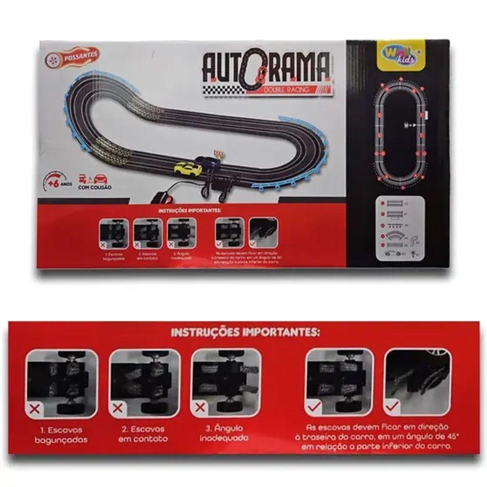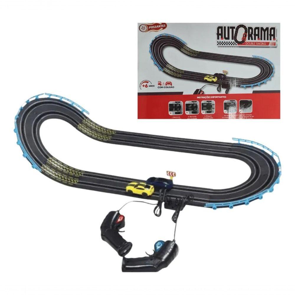 Pista Autorama Possantes Double Racing 304cm 23 Pecas A PilhPista Autorama Possantes Double Racing 304cm | 23 Peças | 2 Carrinhos e Controles | A PilhaPrepare-se para uma corrida cheia de adrenalina com a Pista Autorama Possantes Double Racing de 304cm! Um brinquedo completo com 23 peças, 2 carrinhos de corrida, 2 controles e uma pista com curvas emocionantes e pontos de colisão. Ideal para crianças a partir de 6 anos, essa pista oferece diversão garantida em qualquer lugar, a qualquer hora.Destaques do Produto:Pista com 304cm de comprimento: Montagem em grande escala para corridas ainda mais empolgantes.Inclui 2 carrinhos e 2 controles manuais: Cada jogador controla seu carro em tempo real, proporcionando competições divertidas.Sistema a pilha: Funciona com 4 pilhas AA (não inclusas), ideal para uso em qualquer ambiente sem precisar de tomada.Design moderno: Carrinhos nas cores amarelo e azul e pista preta com detalhes realistas.Com colisão: Pontos estratégicos da pista onde os carrinhos podem se chocar, deixando a brincadeira ainda mais emocionante.Leve e portátil: Fácil de montar, desmontar e transportar. Perfeito para uso em casa, viagens ou encontros com amigos.Especificações Técnicas:Marca: PossantesModelo: Double RacingIndicação: A partir de 6 anosTamanho da pista montada: 304 cmAlimentação: 4 pilhas AA (não inclusas)Peso aproximado: 880 gDimensões da embalagem: 30 cm (altura) x 56,6 cm (largura) x 4,6 cm (profundidade)Cor da pista: PretaCores dos carrinhos: Amarelo e AzulComposição: Plástico e componentes eletrônicosCertificação: Produto com selo do INMETROValidade: IndeterminadaConteúdo da Embalagem:1 Pista com 23 peças2 Carrinhos de corrida2 ControlesManual de montagemDiversão que acelera a imaginação!Transforme qualquer lugar em uma pista de corrida cheia de ação.Adicione ao carrinho agora e garanta horas de diversão com a Pista Autorama Possantes!Produto original com envio rápido e certificado pelo INMETRO