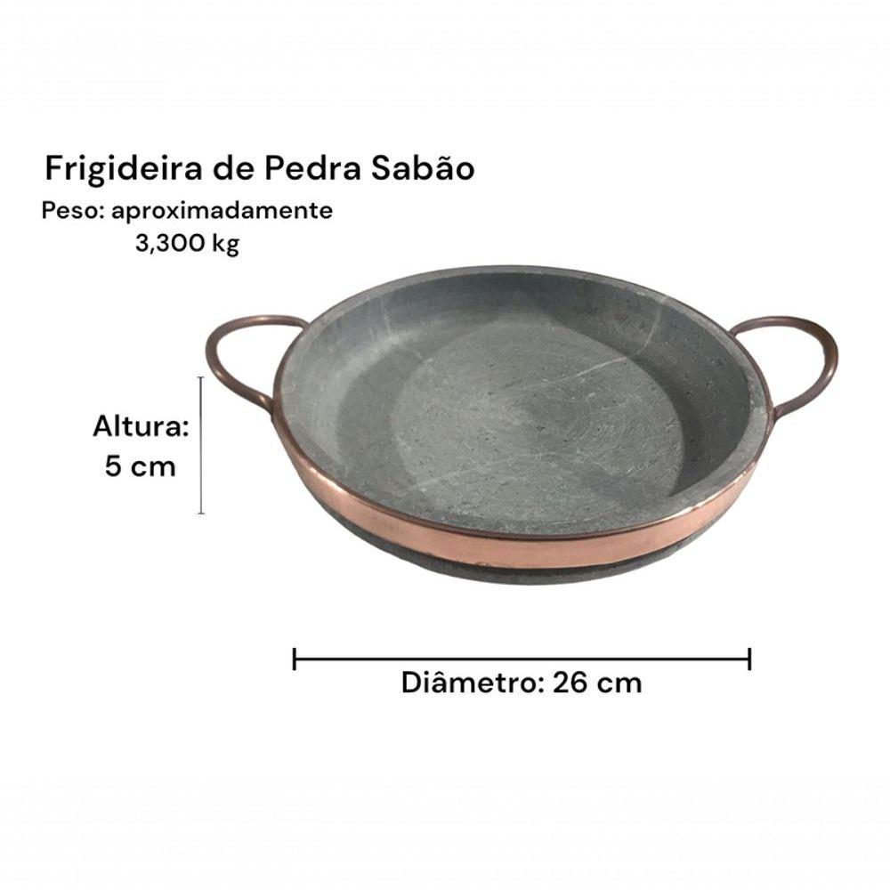 Frigideira De Pedra Sabão 20 Cm Com Tampa De VidroFrigideira de Pedra Sabão 20cm com tampo de vidroPedra SabãoMedidas:Altura / Espessura:- 5 cmDiâmetro- 20 cmPeso: 2,000kgCaracterísticas:Produzida com a melhor matéria prima e acabamento do mercado. Qualidade, durabilidade, beleza e versatilidade em uma única peça.Produto com capacidade de reter a temperatura e liberá-la lentamente por até 50 min.Manual de usoProcesso de “cura” do produto: untar toda a peça com óleo de soja, azeite ou semelhante e deixar descansar por 12h e depois levar ao forno em temperatura média-baixa por cerca de 45 min. Em seguida, desligar o forno, deixar esfriar e lavar. Para uso como bandeja ou decoração não precisa curar. Evite o choque térmico muito forte, como por exemplo: pegar a peça quente, recém saída do do forno/fogo e mergulhar em água fria ou colocá-la em superfície molhada ou gelada. Não colocar no microondas.LimpezaBasta lavá-la com esponja,água e sabãão use produtos abrasivos. Não indicado para máquinas lava-louças.