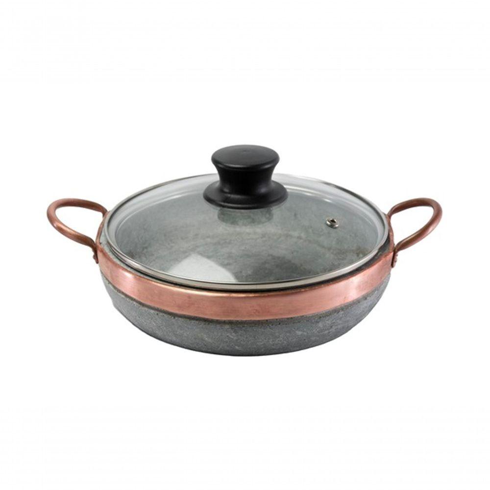 Frigideira De Pedra Sabão 20 Cm Com Tampa De Vidro