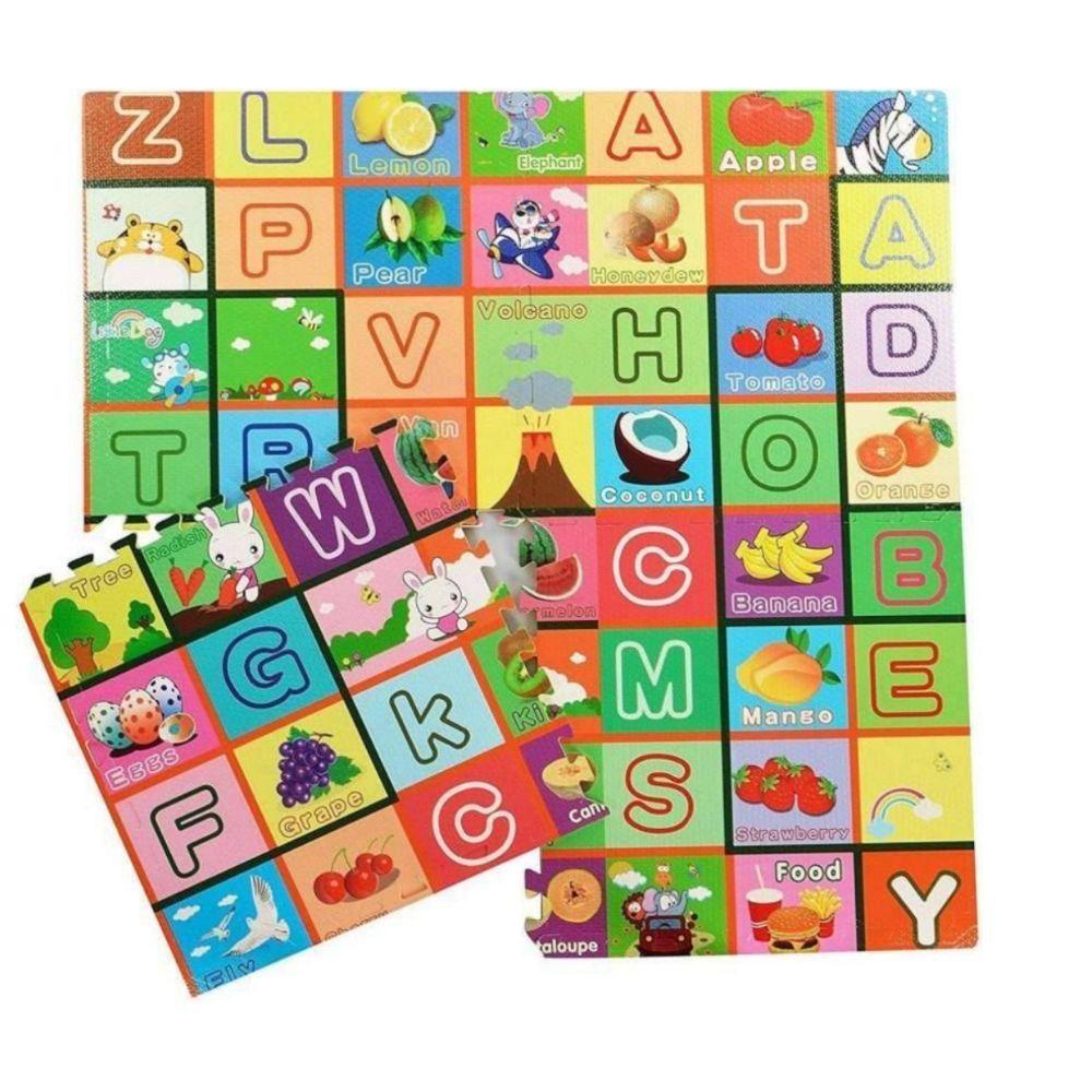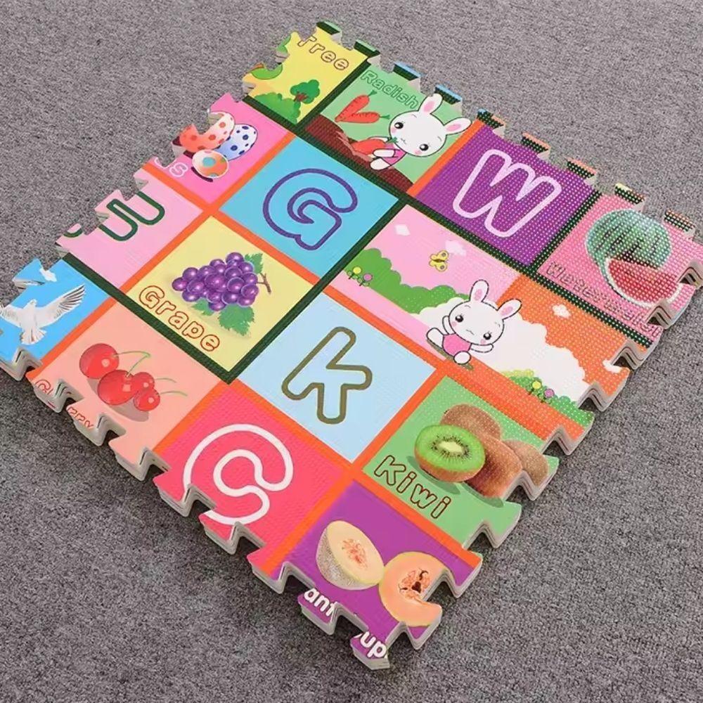 Kit Tapete Infantil 4 Placas Eva Tatame Didatico Grande Alfabeto Colorido Bebe Educativo Montavel 60x60cm