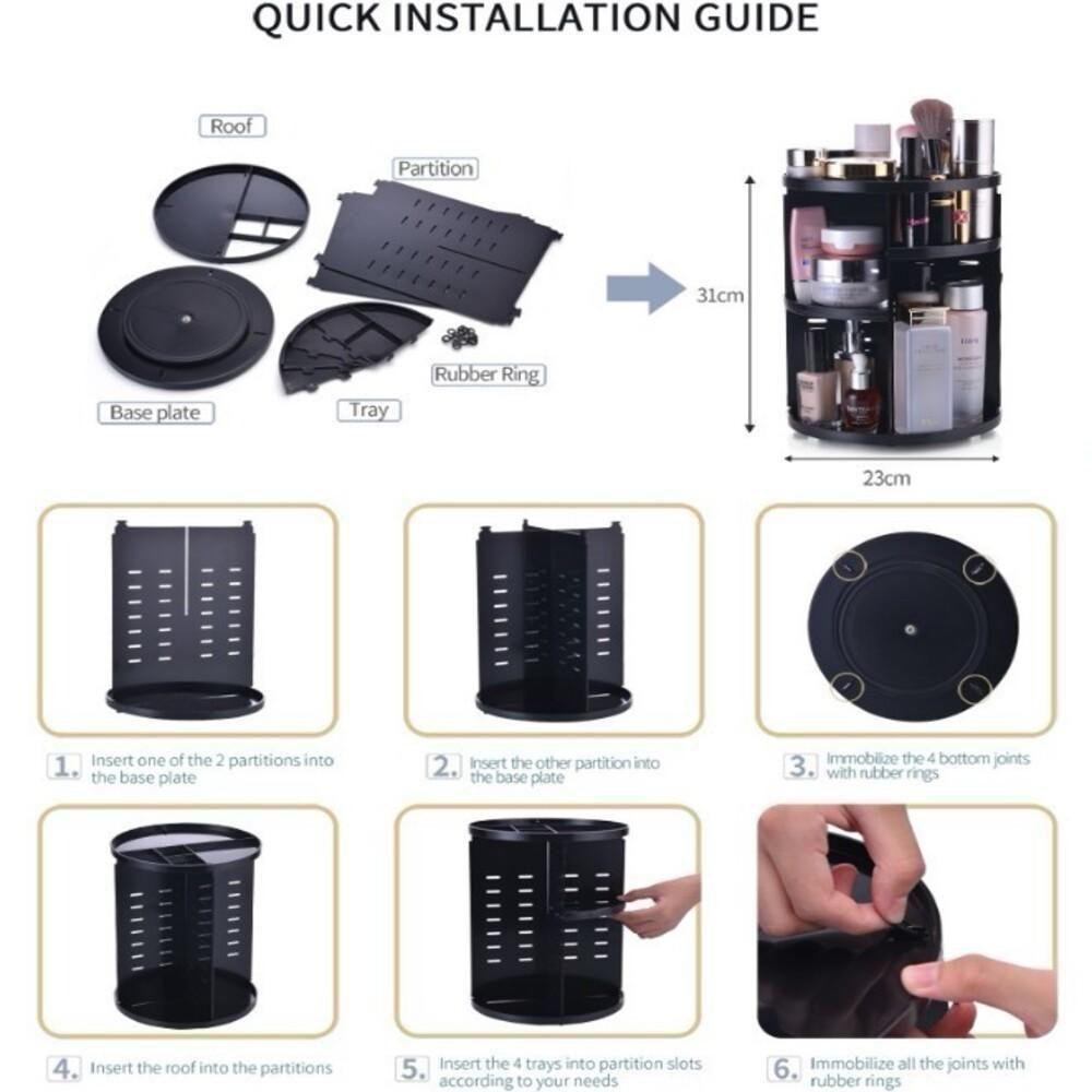 Suporte Organizador De Maquiagem Giratorio Estante Cosmeticos Creme Perfume Skin Care Penteadeira 3 Andares Luxo PretoOrganizador de Maquiagem Rotativo 360° - Organização e Elegância para sua BelezaTransforme sua rotina de beleza com o Organizador de Maquiagem Rotativo 360°! Este elegante organizador é a solução perfeita para manter seus cosméticos e produtos de cuidados com a pele organizados, acessíveis e livres de bagunça.Com sua capacidade de rotação de 360°, você terá acesso rápido e fácil a todos os seus itens de beleza, sem a necessidade de procurar por eles em uma mesa desordenada. O design multi-camada ajustável acomoda uma ampla variedade de produtos, desde frascos de emulsão até batons e esmaltes, permitindo uma personalização total para atender às suas necessidades específicas.A base reforçada e as bandejas duráveis garantem uma capacidade de carga impressionante, suportando até os produtos mais pesados sem deslocar o organizador. Além disso, o material plástico ecológico é resistente à água e fácil de limpar, mantendo seu espaço de beleza sempre impecável com mínimo esforço.Seja para o uso diário em casa ou para criar um espaço profissional e sofisticado em seu salão, o Organizador de Maquiagem Rotativo 360° oferece funcionalidade e estilo. Deixe sua rotina de beleza mais prática e elegante com este indispensável acessório!Especificações:Material: Plástico ecológicoDimensões: 30,5 x 23 x 23 cmCapacidade: Armazena até 30 frascos de emulsão, 20 garrafas de cuidados com a pele e diversos acessórios de maquiagemDesign: Multi-camada, base reforçada, rotativo 360°O Pacote Inclui: 1 x Caixa de Armazenamento CosméticoOrganizador de Maquiagem Rotativo 360° - Organização e Elegância para sua BelezaTransforme sua rotina de beleza com o Organizador de Maquiagem Rotativo 360°! Este elegante organizador é a solução perfeita para manter seus cosméticos e produtos de cuidados com a pele organizados, acessíveis e livres de bagunça.Com sua capacidade de rotação de 360°, você terá acesso rápido e fácil a todos os seus itens de beleza, sem a necessidade de procurar por eles em uma mesa desordenada. O design multi-camada ajustável acomoda uma ampla variedade de produtos, desde frascos de emulsão até batons e esmaltes, permitindo uma personalização total para atender às suas necessidades específicas. A base reforçada e as bandejas duráveis garantem uma capacidade de carga impressionante, suportando até os produtos mais pesados sem deslocar o organizador. Além disso, o material plástico ecológico é resistente à água e fácil de limpar, mantendo seu espaço de beleza sempre impecável com mínimo esforço. Seja para o uso diário em casa ou para criar um espaço profissional e sofisticado em seu salão, o Organizador de Maquiagem Rotativo 360° oferece funcionalidade e estilo. Deixe sua rotina de beleza mais prática e elegante com este indispensável acessório! Especificações:Material: Plástico ecológicoDimensões: 30,5 x 23 x 23 cmCapacidade: Armazena até 30 frascos de emulsão, 20 garrafas de cuidados com a pele e diversos acessórios de maquiagemDesign: Multi-camada, base reforçada, rotativo 360°O Pacote Inclui: 1 x Caixa de Armazenamento Cosmético