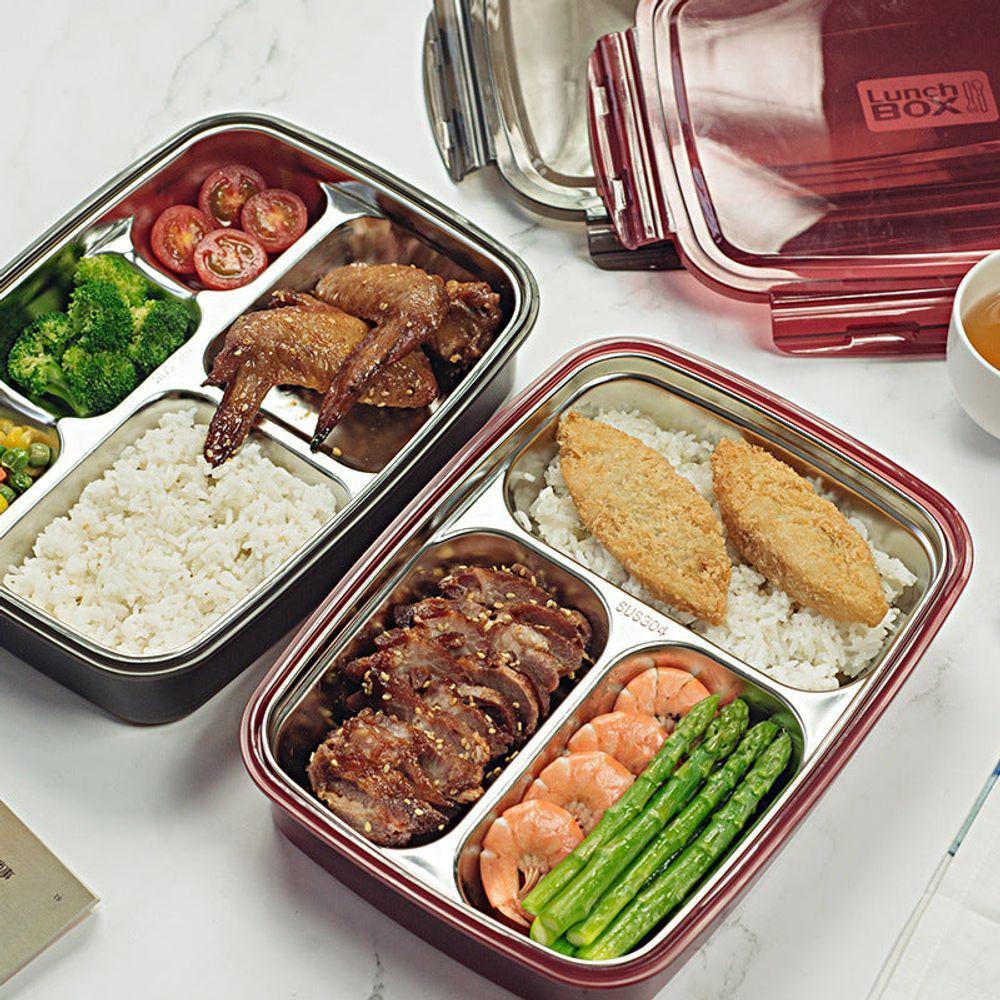 Marmita Organizada Em Pp E Aço Inoxidável Com Três Compartimentos Para Viagens E Trabalho