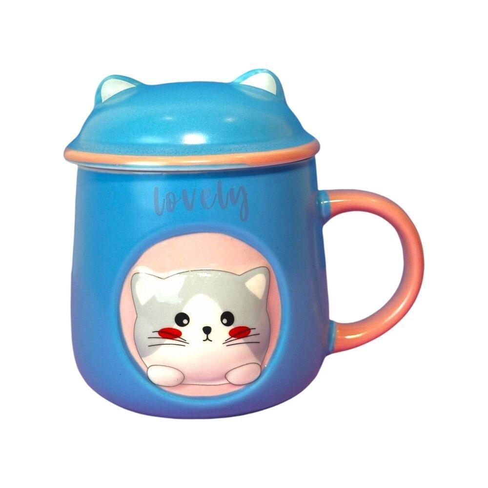 Caneca 3d Gatinho Azul Com Tampa E Colher - Estilo E Sorrisos Em Cada Gole