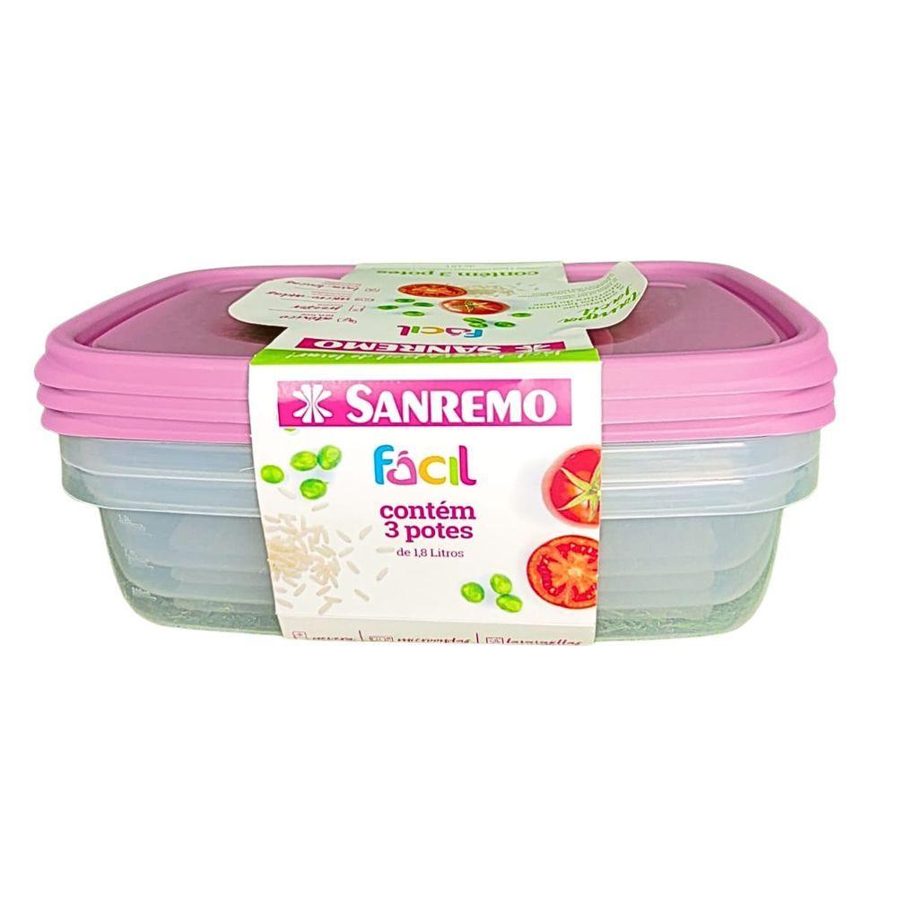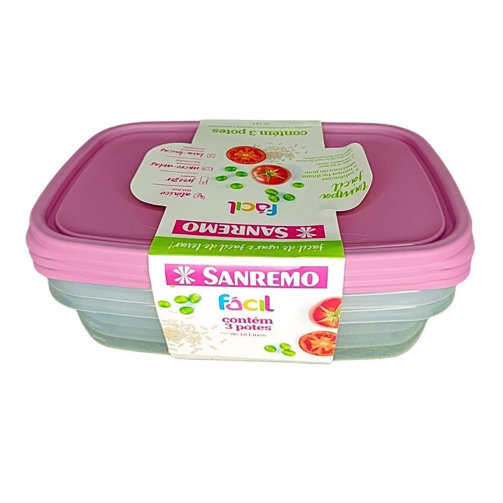 Conjunto 3 Potes Plástico Rosa Sanremo 1,8L