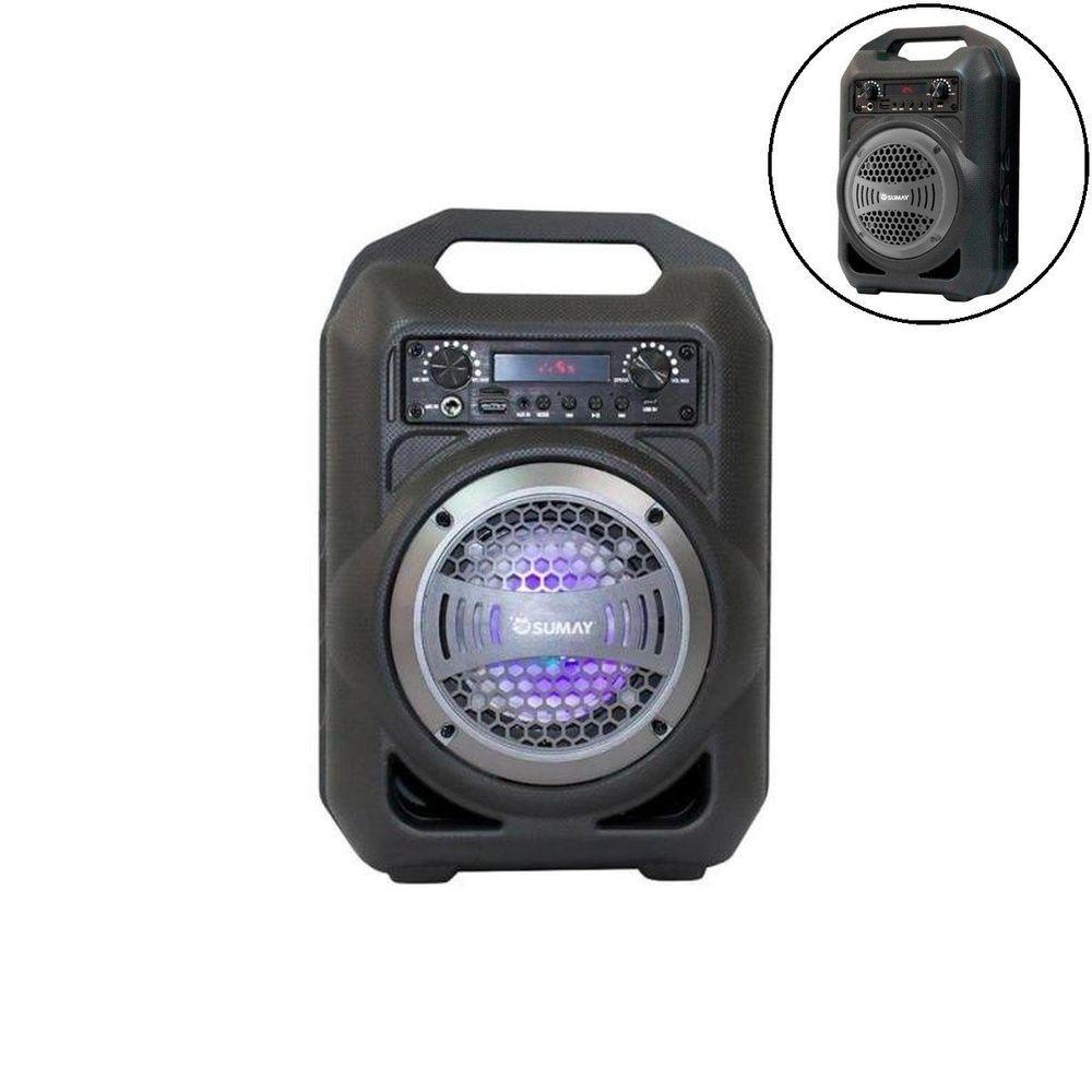Caixa De Som Portátil Sumay Gallon Music 30w CinzaA Caixa de Som Portátil Sumay Gallon Music CSP1302 30W Cinza é a escolha ideal para quem busca qualidade sonora e praticidade em um único produto. Com potência RMS de 30W, ela oferece uma experiência sonora envolvente, reproduzindo sua playlist favorita com clareza e intensidade. Seja em casa, em viagens ou em passeios ao ar livre, essa caixa de som portátil é leve e compacta, pesando apenas 1,2kg, o que facilita o transporte e garante que a música esteja sempre com você.Equipada com conexão Bluetooth, USB, entrada para cartão de memória TF e AUX, a Sumay CSP1302 é altamente versátil e compatível com diversos dispositivos, tornando o processo de reprodução mais simples e prático. Além disso, sua funcionalidade de rádio FM permite que você sintonize suas estações favoritas, ampliando suas possibilidades de entretenimento. Para os amantes de karaokê, ela também oferece a opção de conectar um microfone (não incluso), permitindo que você solte a voz e transforme qualquer momento em uma festa animada.A diversão é ainda mais completa com o painel de LED integrado, que ilumina o alto-falante com luzes coloridas, adicionando um toque especial e vibrante aos seus momentos de lazer. Fabricada em material ABS resistente, a Caixa de Som Gallon Music combina durabilidade e design moderno, apresentando uma elegante cor cinza que combina com qualquer ambiente.Com até 6 horas de duração de bateria (a 80% do volume) e um tempo de carregamento aproximado de 4 horas, essa caixa de som garante que você aproveite suas músicas sem interrupções. Suas dimensões compactas de 23 x 33 x 14cm tornam o transporte e o armazenamento ainda mais simples, enquanto os itens inclusos na embalagem – cabo USB e manual do usuário – oferecem tudo o que você precisa para começar a usar o produto imediatamente.A Caixa de Som Portátil Sumay Gallon Music CSP1302 30W Cinza é a escolha ideal para quem busca qualidade sonora e praticidade em um único produto. Com potência RMS de 30W, ela oferece uma experiência sonora envolvente, reproduzindo sua playlist favorita com clareza e intensidade. Seja em casa, em viagens ou em passeios ao ar livre, essa caixa de som portátil é leve e compacta, pesando apenas 1,2kg, o que facilita o transporte e garante que a música esteja sempre com você.Equipada com conexão Bluetooth, USB, entrada para cartão de memória TF e AUX, a Sumay CSP1302 é altamente versátil e compatível com diversos dispositivos, tornando o processo de reprodução mais simples e prático. Além disso, sua funcionalidade de rádio FM permite que você sintonize suas estações favoritas, ampliando suas possibilidades de entretenimento. Para os amantes de karaokê, ela também oferece a opção de conectar um microfone (não incluso), permitindo que você solte a voz e transforme qualquer momento em uma festa animada.A diversão é ainda mais completa com o painel de LED integrado, que ilumina o alto-falante com luzes coloridas, adicionando um toque especial e vibrante aos seus momentos de lazer. Fabricada em material ABS resistente, a Caixa de Som Gallon Music combina durabilidade e design moderno, apresentando uma elegante cor cinza que combina com qualquer ambiente.Com até 6 horas de duração de bateria (a 80% do volume) e um tempo de carregamento aproximado de 4 horas, essa caixa de som garante que você aproveite suas músicas sem interrupções. Suas dimensões compactas de 23 x 33 x 14cm tornam o transporte e o armazenamento ainda mais simples, enquanto os itens inclusos na embalagem – cabo USB e manual do usuário – oferecem tudo o que você precisa para começar a usar o produto imediatamente.