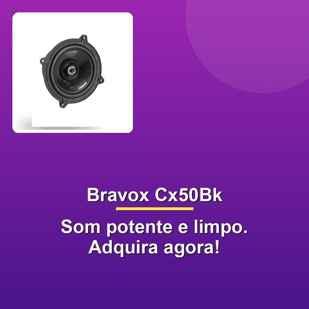 Alto Falante Bravox Coaxial Cx50bk 5" 60w Rms 4rO Alto Falante Bravox Coaxial Cx50Bk 5 Polegadas é a escolha ideal para quem busca uma experiência sonora de alta qualidade em um design compacto e eficiente. Com potência de 60 W RMS e capacidade máxima de até 120 W, este modelo promete entregar um som limpo e potente, seja para ouvir suas músicas favoritas, acompanhar podcasts ou criar o ambiente perfeito em seu veículo.Projetado com tecnologia de ponta, o Bravox Cx50Bk conta com carcaça injetada em termoplástico, garantindo durabilidade e resistência. Seu cone fabricado em polipropileno oferece leveza e precisão, enquanto a borda em Santoprene assegura maior flexibilidade, contribuindo para uma reprodução sonora fiel e livre de distorções. A bobina móvel em duralumínio proporciona maior eficiência térmica e estabilidade, aumentando a vida útil do produto.Para os amantes de um áudio mais equilibrado, este alto-falante inclui um divisor de frequência para o tweeter, que permite separar os sons agudos dos médios, resultando em uma experiência de áudio mais rica e detalhada. O tweeter de Neodymium, equipado com diafragma de Mylar, traz clareza e nitidez aos tons mais altos, garantindo uma performance superior para todos os estilos musicais. Com sensibilidade de 88 dB/W/m e resposta de frequência que vai de 70 Hz a 20 kHz, o Bravox Cx50Bk entrega um som envolvente que preenche o ambiente com qualidade profissional.Seu design compacto, com diâmetro de 140 mm e altura de apenas 60 mm, facilita a instalação em diversos tipos de veículos sem comprometer o espaço. Além disso, a impedância de 4 ohms e a frequência de ressonância de 95 Hz tornam este modelo otimizado para sistemas de som automotivos, oferecendo eficiência energética e compatibilidade com diversos amplificadores.O Alto Falante Bravox Coaxial Cx50Bk 5 Polegadas é a escolha ideal para quem busca uma experiência sonora de alta qualidade em um design compacto e eficiente. Com potência de 60 W RMS e capacidade máxima de até 120 W, este modelo promete entregar um som limpo e potente, seja para ouvir suas músicas favoritas, acompanhar podcasts ou criar o ambiente perfeito em seu veículo.Projetado com tecnologia de ponta, o Bravox Cx50Bk conta com carcaça injetada em termoplástico, garantindo durabilidade e resistência. Seu cone fabricado em polipropileno oferece leveza e precisão, enquanto a borda em Santoprene assegura maior flexibilidade, contribuindo para uma reprodução sonora fiel e livre de distorções. A bobina móvel em duralumínio proporciona maior eficiência térmica e estabilidade, aumentando a vida útil do produto.Para os amantes de um áudio mais equilibrado, este alto-falante inclui um divisor de frequência para o tweeter, que permite separar os sons agudos dos médios, resultando em uma experiência de áudio mais rica e detalhada. O tweeter de Neodymium, equipado com diafragma de Mylar, traz clareza e nitidez aos tons mais altos, garantindo uma performance superior para todos os estilos musicais. Com sensibilidade de 88 dB/W/m e resposta de frequência que vai de 70 Hz a 20 kHz, o Bravox Cx50Bk entrega um som envolvente que preenche o ambiente com qualidade profissional.Seu design compacto, com diâmetro de 140 mm e altura de apenas 60 mm, facilita a instalação em diversos tipos de veículos sem comprometer o espaço. Além disso, a impedância de 4 ohms e a frequência de ressonância de 95 Hz tornam este modelo otimizado para sistemas de som automotivos, oferecendo eficiência energética e compatibilidade com diversos amplificadores.
