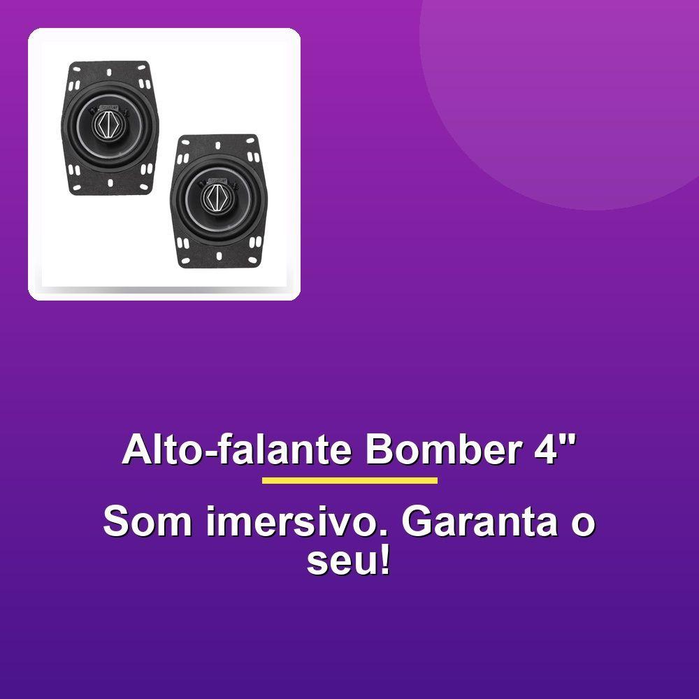 Alto Falante Bomber 4" Bbr Top 120w Rms 4 Ohms ParDescubra a potência e a qualidade sonora do Alto Falante Bomber 4 Bbr Top. Com 120W RMS e impedância de 4 Ohms, este par de alto-falantes oferece uma experiência sonora imersiva. A resposta de frequência de 126 Hz a 20 kHz garante clareza em cada nota, enquanto a sensibilidade de 86 dB SPL proporciona um som nítido e potente. Construído com materiais de alta qualidade, como cone de polipropileno e suspensão de borracha, este modelo é durável e eficiente. Ideal para quem busca desempenho superior e durabilidade em sistemas de som automotivo.Descubra a potência e a qualidade sonora do Alto Falante Bomber 4 Bbr Top. Com 120W RMS e impedância de 4 Ohms, este par de alto-falantes oferece uma experiência sonora imersiva. A resposta de frequência de 126 Hz a 20 kHz garante clareza em cada nota, enquanto a sensibilidade de 86 dB SPL proporciona um som nítido e potente. Construído com materiais de alta qualidade, como cone de polipropileno e suspensão de borracha, este modelo é durável e eficiente. Ideal para quem busca desempenho superior e durabilidade em sistemas de som automotivo.