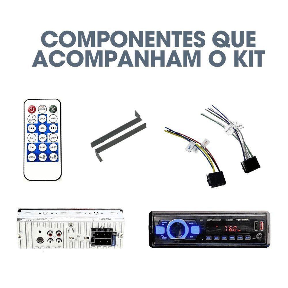 Auto Rádio Roadstar Rs2605br BluetoothTransforme suas viagens em momentos únicos com o Auto Rádio Bluetooth Roadstar RS2605BR ES, uma solução completa para quem busca qualidade sonora, conectividade avançada e praticidade no dia a dia. Este MP3 player combina tecnologia de ponta com um design moderno e funcional, oferecendo tudo o que você precisa para desfrutar de suas playlists favoritas enquanto recarrega o celular e aproveita o melhor do entretenimento em movimento.Com potência de 48 Watts distribuída em 4 canais, o RS2605BR ES garante um som nítido e envolvente, perfeito para qualquer estilo musical. A conexão Bluetooth permite emparelhar seu smartphone de forma rápida e segura, proporcionando acesso direto às suas músicas e chamadas com total praticidade. Além disso, o rádio FM integrado possui memória para até 18 estações, oferecendo uma ampla seleção de opções para acompanhar as melhores transmissões.Equipado com entrada para pen drive de até 32 GB e suporte para reprodução de arquivos MP3 e WMA, este auto rádio é ideal para quem gosta de levar suas playlists personalizadas a qualquer lugar. A função USB Charger permite carregar seu celular enquanto você aproveita o som, mantendo todos os seus dispositivos prontos para uso. A entrada auxiliar oferece ainda mais versatilidade, permitindo a conexão de outros dispositivos de áudio.O visor LED e os botões em RGB com 7 opções de cores personalizáveis adicionam estilo e modernidade ao painel do veículo, enquanto o controle remoto e o controle via aplicativo garantem facilidade de operação mesmo à distância. Para quem busca uma solução completa, o RS2605BR ES também conta com 4 saídas RCA de áudio e conector ISO, facilitando a instalação e integração com outros equipamentos.Transforme suas viagens em momentos únicos com o Auto Rádio Bluetooth Roadstar RS2605BR ES, uma solução completa para quem busca qualidade sonora, conectividade avançada e praticidade no dia a dia. Este MP3 player combina tecnologia de ponta com um design moderno e funcional, oferecendo tudo o que você precisa para desfrutar de suas playlists favoritas enquanto recarrega o celular e aproveita o melhor do entretenimento em movimento.Com potência de 48 Watts distribuída em 4 canais, o RS2605BR ES garante um som nítido e envolvente, perfeito para qualquer estilo musical. A conexão Bluetooth permite emparelhar seu smartphone de forma rápida e segura, proporcionando acesso direto às suas músicas e chamadas com total praticidade. Além disso, o rádio FM integrado possui memória para até 18 estações, oferecendo uma ampla seleção de opções para acompanhar as melhores transmissões.Equipado com entrada para pen drive de até 32 GB e suporte para reprodução de arquivos MP3 e WMA, este auto rádio é ideal para quem gosta de levar suas playlists personalizadas a qualquer lugar. A função USB Charger permite carregar seu celular enquanto você aproveita o som, mantendo todos os seus dispositivos prontos para uso. A entrada auxiliar oferece ainda mais versatilidade, permitindo a conexão de outros dispositivos de áudio.O visor LED e os botões em RGB com 7 opções de cores personalizáveis adicionam estilo e modernidade ao painel do veículo, enquanto o controle remoto e o controle via aplicativo garantem facilidade de operação mesmo à distância. Para quem busca uma solução completa, o RS2605BR ES também conta com 4 saídas RCA de áudio e conector ISO, facilitando a instalação e integração com outros equipamentos.