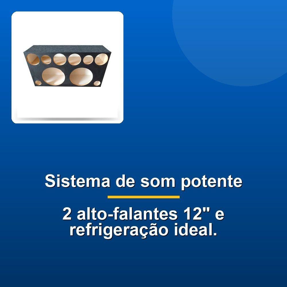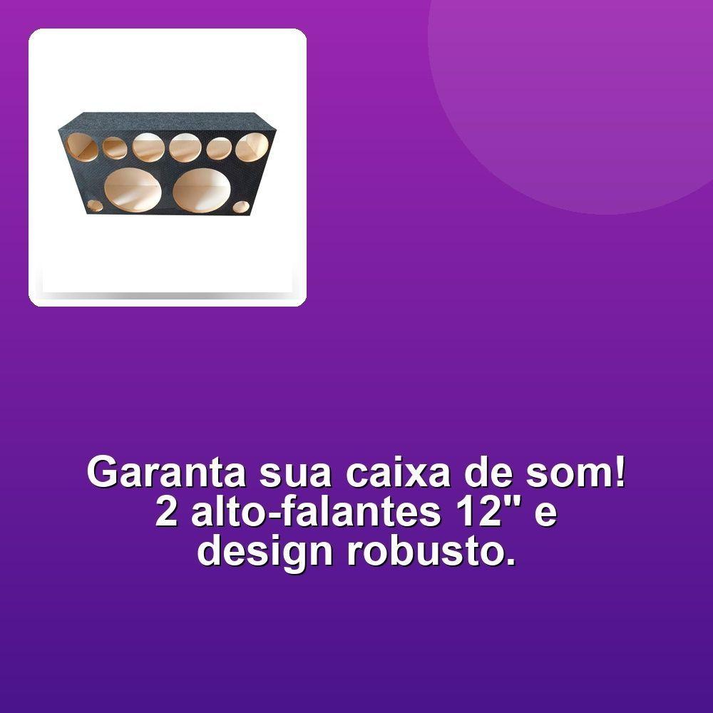 Caixa Vazia 2 Alto-falantes 12 4 Cornetas 2 Tweeter DutadaSe você está em busca de uma caixa acarpetada e selada que une qualidade, resistência e um design robusto, acaba de encontrar a solução ideal para o seu projeto de som! Esta caixa vazia foi cuidadosamente desenvolvida para atender às mais altas exigências de desempenho e durabilidade, sendo perfeita para quem deseja montar um sistema de som poderoso e impressionante. Com espaço para 2 alto-falantes de 12 polegadas, 4 cornetas e 2 tweeters, ela oferece uma estrutura otimizada para garantir máxima eficiência sonora e um excelente desempenho.Fabricada com materiais de altíssima qualidade, esta caixa é revestida com carpete resistente, conferindo proteção e uma estética profissional. Sua estrutura selada foi projetada para suportar os desafios mais intensos, sendo amplamente utilizada em paradões de som, campeonatos e eventos de grande porte. Independentemente da aplicação, este produto se destaca por sua capacidade de entregar resultados superiores, mesmo nas condições mais exigentes.Com dimensões bem planejadas — comprimento de 88 cm, profundidade de 35 cm e altura de 48 cm —, a caixa oferece espaço suficiente para acomodar os componentes necessários, ao mesmo tempo que mantém um formato prático e funcional para transporte e instalação. Além disso, sua resistência garante longa durabilidade, tornando-a um investimento confiável para os amantes de som automotivo ou eventos que demandam alto desempenho acústico.Escolher esta caixa vazia é dar um passo à frente no seu projeto de som. Seja para transformar seu carro em um verdadeiro espetáculo sonoro ou para impressionar em campeonatos com graves potentes e agudos cristalinos, este produto se destaca como uma excelente opção. Imagens meramente ilustrativas. Aproveite essa oportunidade e leve para casa uma caixa que combina design, resistência e qualidade incomparável!Se você está em busca de uma caixa acarpetada e selada que une qualidade, resistência e um design robusto, acaba de encontrar a solução ideal para o seu projeto de som! Esta caixa vazia foi cuidadosamente desenvolvida para atender às mais altas exigências de desempenho e durabilidade, sendo perfeita para quem deseja montar um sistema de som poderoso e impressionante. Com espaço para 2 alto-falantes de 12 polegadas, 4 cornetas e 2 tweeters, ela oferece uma estrutura otimizada para garantir máxima eficiência sonora e um excelente desempenho.Fabricada com materiais de altíssima qualidade, esta caixa é revestida com carpete resistente, conferindo proteção e uma estética profissional. Sua estrutura selada foi projetada para suportar os desafios mais intensos, sendo amplamente utilizada em paradões de som, campeonatos e eventos de grande porte. Independentemente da aplicação, este produto se destaca por sua capacidade de entregar resultados superiores, mesmo nas condições mais exigentes.Com dimensões bem planejadas — comprimento de 88 cm, profundidade de 35 cm e altura de 48 cm —, a caixa oferece espaço suficiente para acomodar os componentes necessários, ao mesmo tempo que mantém um formato prático e funcional para transporte e instalação. Além disso, sua resistência garante longa durabilidade, tornando-a um investimento confiável para os amantes de som automotivo ou eventos que demandam alto desempenho acústico.Escolher esta caixa vazia é dar um passo à frente no seu projeto de som. Seja para transformar seu carro em um verdadeiro espetáculo sonoro ou para impressionar em campeonatos com graves potentes e agudos cristalinos, este produto se destaca como uma excelente opção. Imagens meramente ilustrativas. Aproveite essa oportunidade e leve para casa uma caixa que combina design, resistência e qualidade incomparável!