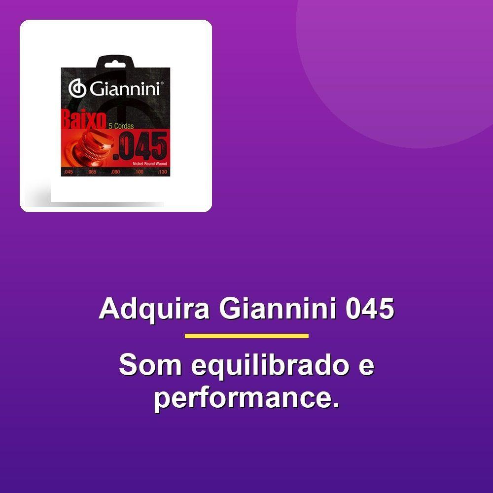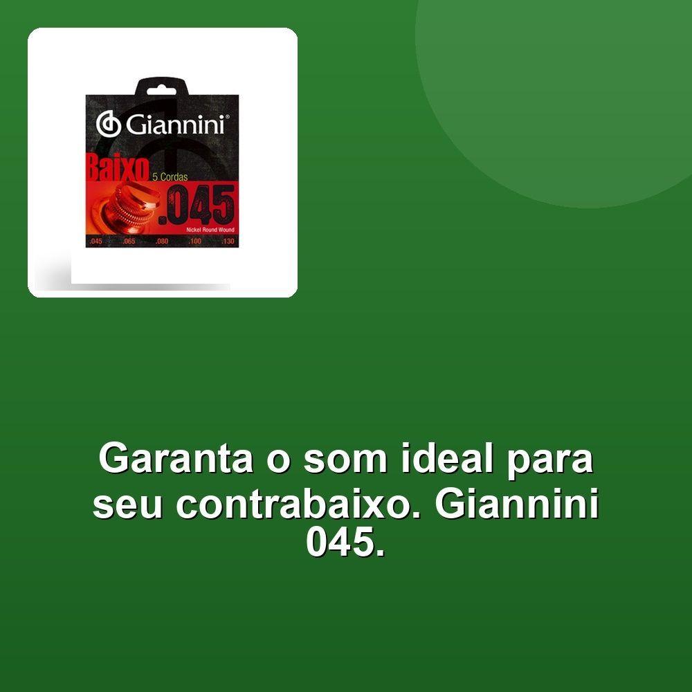 Corda Giannini Contrabaixo 0.045" PesadoDesbloqueie o som do seu contrabaixo com a Corda Giannini GEEBRS 045 5 Cordas!Conhecida pela sua qualidade, esta corda foi desenvolvida em niquel, produzindo um som equilibrado e penetrante, com um timbre insuperável. Além disso, garante maior durabilidade, atendendo aos requisitos dos mais conhecidos padrões de afinação, agradando ao paladar dos músicos mais exigentes.Com uma camada envoltória em niquel, esta corda é especialmente projetada para contrabaixos de 5 cordas. Os calibres de 045 - 065 - 080 - 100 - 130 garantem uma tensão pesada, ideal para músicos que buscam um som mais grave e potente.Se você é um músico exigente que busca uma corda que atenda às suas necessidades, a Giannini GEEBRS 045 5 Cordas é a escolha certa. Com sua qualidade superior e som insuperável, você estará pronto para criar música incrível!Desbloqueie o som do seu contrabaixo com a Corda Giannini GEEBRS 045 5 Cordas!Conhecida pela sua qualidade, esta corda foi desenvolvida em niquel, produzindo um som equilibrado e penetrante, com um timbre insuperável. Além disso, garante maior durabilidade, atendendo aos requisitos dos mais conhecidos padrões de afinação, agradando ao paladar dos músicos mais exigentes.Com uma camada envoltória em niquel, esta corda é especialmente projetada para contrabaixos de 5 cordas. Os calibres de 045 - 065 - 080 - 100 - 130 garantem uma tensão pesada, ideal para músicos que buscam um som mais grave e potente.Se você é um músico exigente que busca uma corda que atenda às suas necessidades, a Giannini GEEBRS 045 5 Cordas é a escolha certa. Com sua qualidade superior e som insuperável, você estará pronto para criar música incrível!