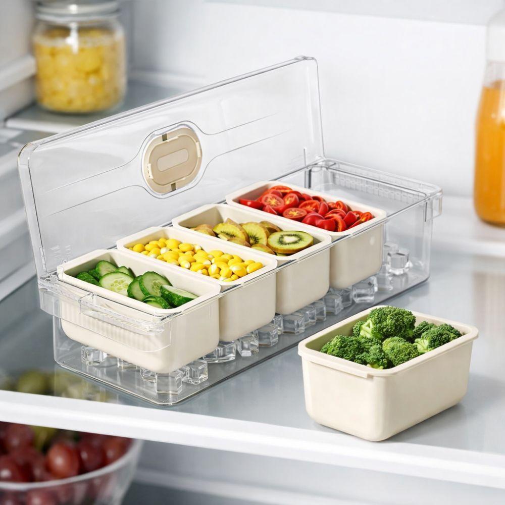 Pote Organizador Hermético Geladeira 5 Divisões Escorredor
