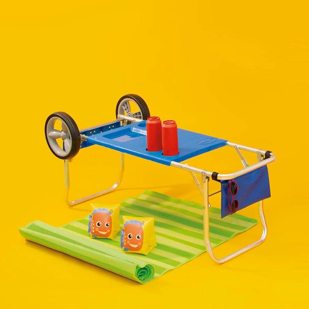 Carrinho de praia Mor Torne seu verão mais divertido ao acomodar familiares e amigos à beira-mar sem muito esforço. Além de carregar tudo o que precisa para curtir um dia na praia, seu carrinho se transforma em uma prática mesa com quatro encaixes para copos ou latas. O carrinho de praia Mor suporta até cinco cadeiras, guarda-sol e esteiras e, para maior praticidade, possui porta-objetos pequeno, excelente para passar o dia inteiro na praia e fazer todas as suas refeições em frente ao mar. Suas rodas grandes garantem ótimo desempenho na areia e sua estrutura produzida pela Mor, em alumínio de excelente qualidade e tampo em polipropileno, garantem durabilidade já que seu carrinho não enferruja, mesmo em regiões litorâneas. Para maior segurança, acompanha corda elástica com gancho para fixar seus pertences durante o transporte. Resistente, suporta até 15 Kg distribuídos e vai acompanhar você por muitos veraneios! Descrição do produto Marca: Mor Material: Alumínio Capacidade: 15 Kg distribuídos Medidas: Altura: 22,92 cm Comprimento: 1,12 m Largura: 48,30 cm Altura da mesa (do chão até o tampo): 42 cm Imagens meramente ilustrativas, todos os itens que ambientam o produto não estão inclusos.