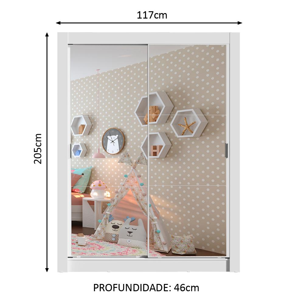 Uma opção na medida perfeita para o dormitório das crianças. Este é o Guarda-roupa Infantil Bento da Madesa.Possui duas portas de correr de deslizamento suave, trilhos em alumínio, dobradiças metálicas e ferragens de qualidade que proporcionam melhor sustentação ao móvel. Contempla duas gavetas com corrediças metálicas, duas prateleiras e três nichos, além de um cabideiro de metal resistente e de tamanho diferenciado, 105 cm.O acabamento interno e externo é branco, feito em Pintura Poliéster de alta resistência que confere maior qualidade e durabilidade ao produto.Medidas totais do guarda-roupa: 205 cm de altura x 117 cm de largura x 51 cm de profundidade.Imagens meramente ilustrativas.Itens inclusos:- Duas (2) gavetas com corrediças metálicas- Um (1) cabideiro metálico grande- Duas (2) prateleiras e três (3) nichos- Duas (2) portas de correr com espelhos e puxadores em PVCCódigo do produto: XA1094092E2GObs.: A Madesa não disponibiliza serviço de montagem. O produto segue com manual de instalação e todas as ferragens necessárias para sua montagem.1-O produto é novo ou usado?R.: Todos os produtos da Madesa são novos, enviados da nossa fábrica diretamente para as casas de nossos clientes.2-O produto vem montado? Se não, vocês realizam a montagem?R.: A Madesa não disponibiliza serviço de montagem. Todos os produtos seguem com manual de instalação e as ferragens necessárias. Alguns produtos possuem vídeo explicando o passo a passo da montagem.3-Vocês possuem loja física? Posso retirar meu produto em mãos?R.: Não possuímos loja física, apenas loja virtual. Confira as opções de envio ao colocar o seu CEP.4-Qual é o valor do envio? Posso pagar separadamente?R.: O valor do envio é calculado com base no peso e volume do produto, e no CEP de destino. Você pode calcular o valor e prazo de entrega no simulador.5-A Madesa entrega em todo Brasil? Como é feita a entrega?R.: Sim, entregamos no Brasil inteiro através de transportadoras parceiras.6-O produto acompanha Nota Fiscal?R.: Sim, todos os produtos são entregues com suas respectivas notas fiscais.7-Os produtos possuem garantia?R.: Sim. A Madesa oferece 3 meses de garantia para defeitos de fabricação.A Madesa se dedica à sustentabilidade com várias iniciativas: temos uma usina própria para gerar energia que abastece uma de nossas fábricas. Selecionamos nossos fornecedores, priorizando aqueles que possuem um compromisso com a sustentabilidade e proteção do meio ambiente. Todo o plástico utilizado no setor produtivo é proveniente de reciclagem e as suas sobras são encaminhadas ao fornecedor que os recicla. Também investimos no desenvolvimento contínuo de nossos colaboradores e em ações educacionais que beneficiem a comunidade.