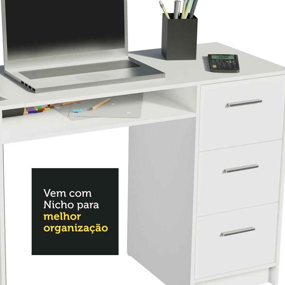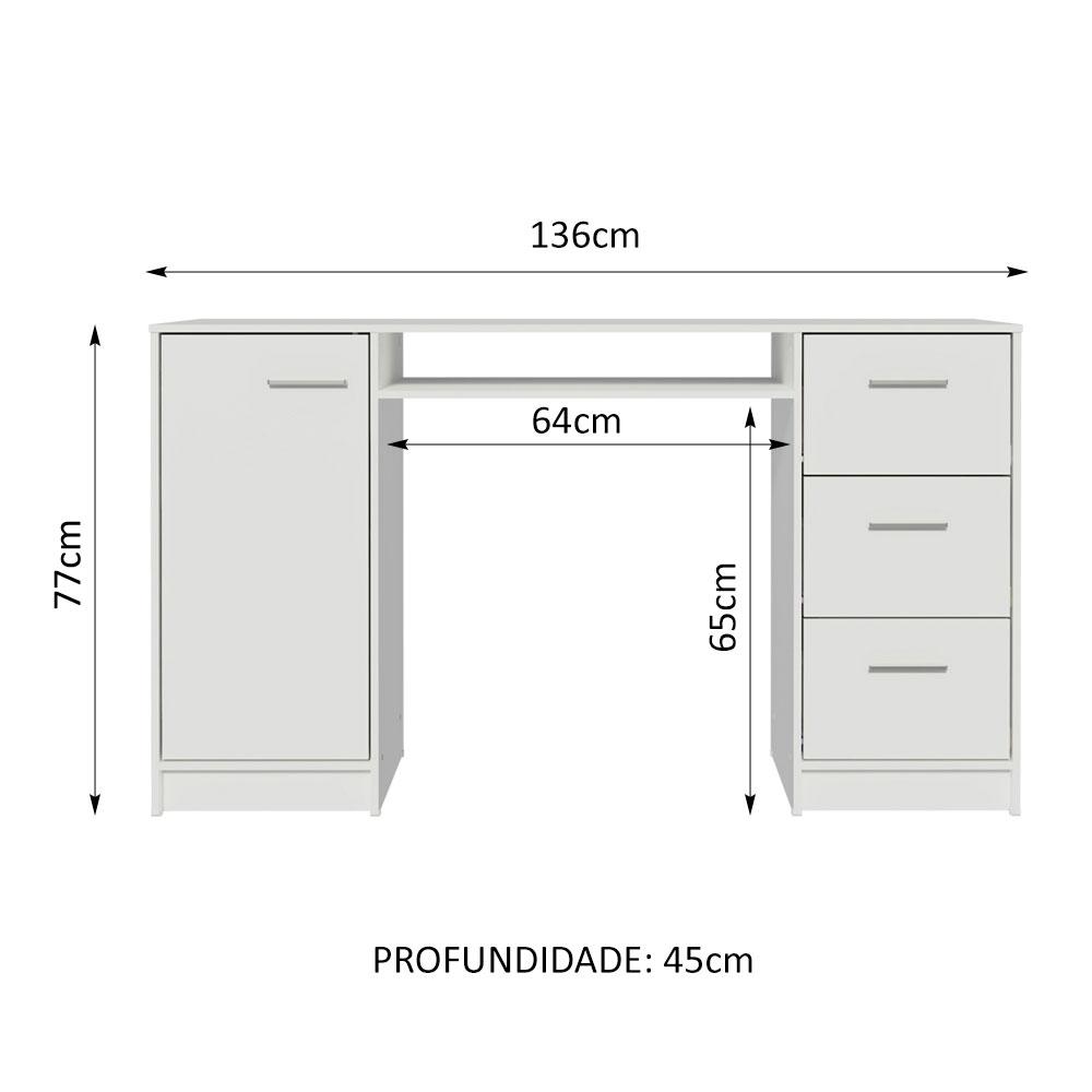 Escrivaninha Mesa para Computador Madesa Alaska 3 Gavetas 1 Porta - Branco