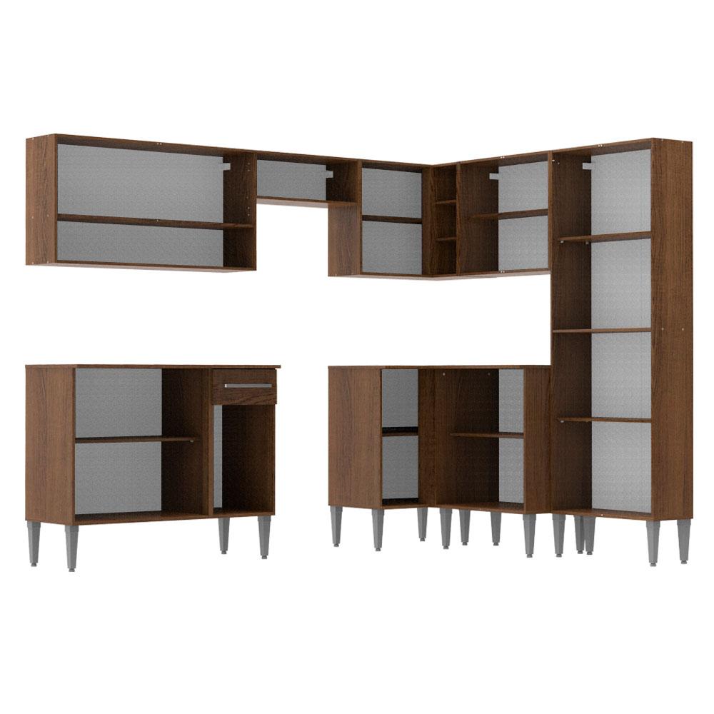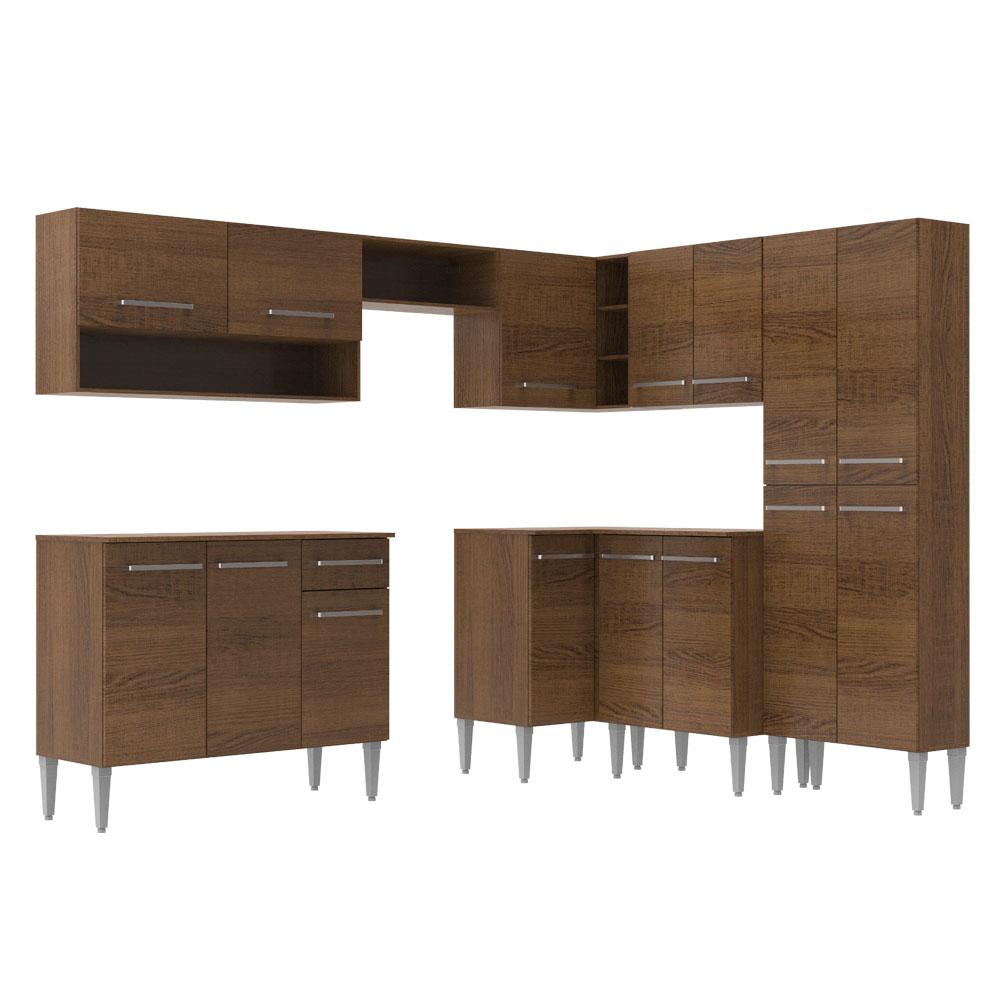Armário de Cozinha Completa de Canto Madesa Emilly Rock com Balcão e Adega - Rustic