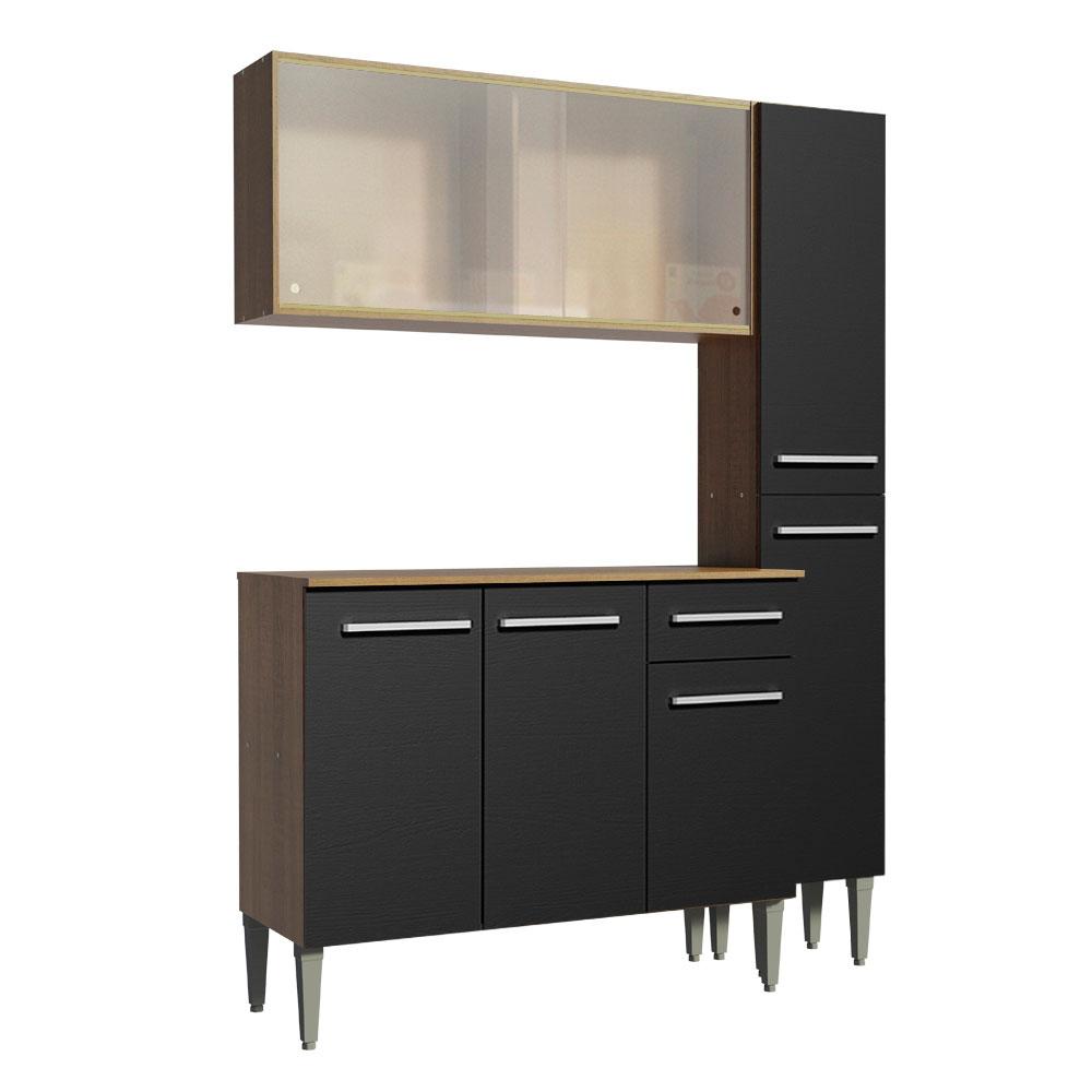 Armário de Cozinha Compacta Madesa Emilly Force com Balcão e Paneleiro Rustic/Preto