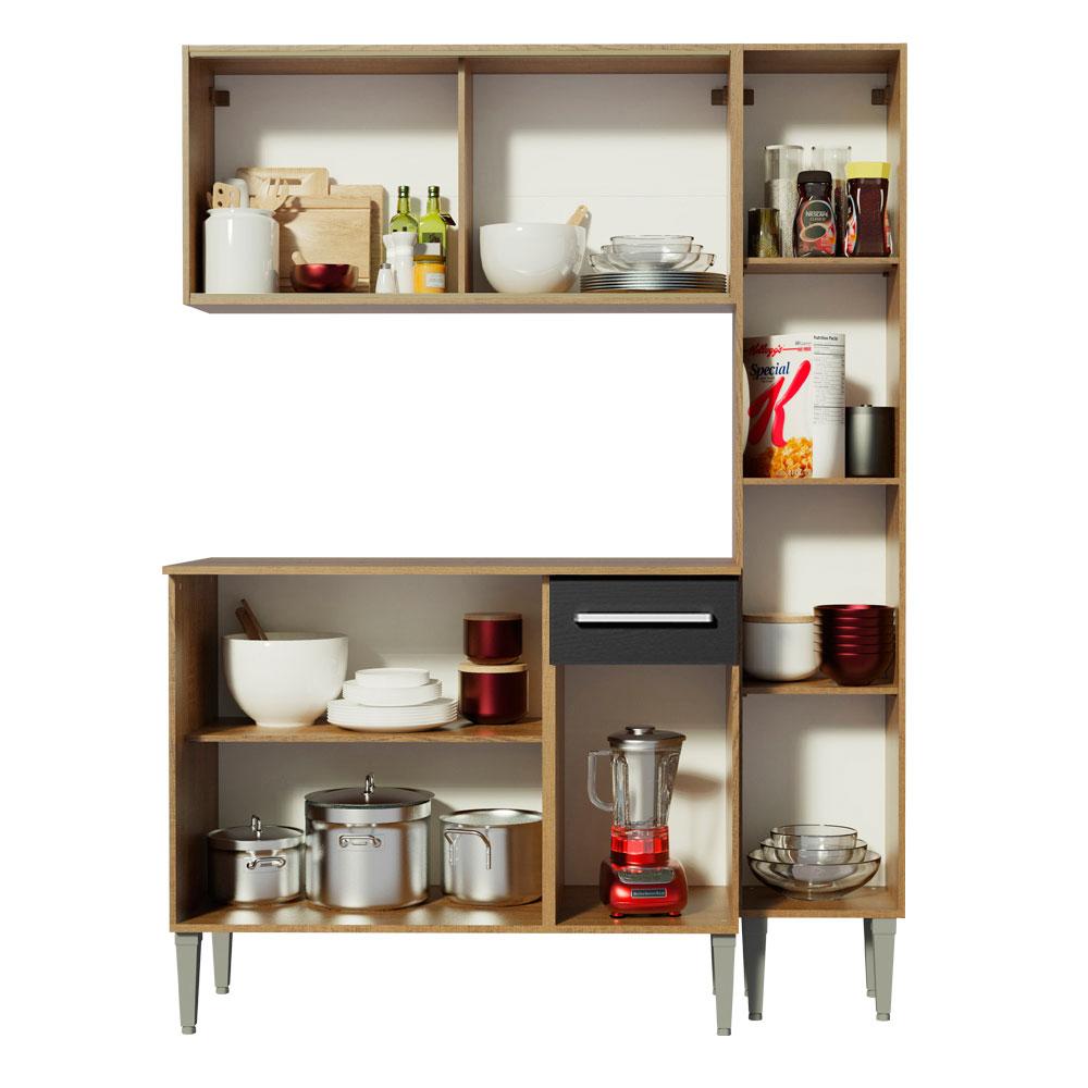 A Cozinha Emilly Force é fabricada com materiais de qualidade, como puxadores com detalhe em alumínio e corrediças e dobradiças metálicas. Os pés são em PVC, para facilitar a limpeza e reguláveis para nivelar pequenas imperfeições no piso.O armário aéreo possui duas portas de correr de vidro, um detalhe que traz mais sofisticação e elegância à sua cozinha.Os módulos são separados e podem ser montados conforme a necessidade do espaço. Além disso, a disposição interna permite uma melhor organização de talheres, louças e demais utensílios de cozinha. Para completar, o balcão comporta pias de 105 cm x 44 cm e acompanha tampo de MDP.O acabamento da estrutura é no padrão amadeirado Rustic e as portas e frente são pretas. As partes internas das costas e da gaveta são brancas. O processo é feito em Pintura Poliéster ecológica com 7 camadas de proteção, que oferecem resistência contra os efeitos da água e do calor.Medidas totais: 186 cm de altura x 137 cm de largura x 44 cm profundidade no balcão e 27 cm no aéreo e no paneleiro.(Imagens meramente ilustrativas: a decoração não acompanha o produto. Os armários aéreos e o paneleiro precisam ser fixados na parede.)Itens inclusos:- Um (1) Paneleiro com duas (2) portas- Um (1) Balcão com três (3) portas, uma (1) gaveta e tampo- Um (1) Aéreo com duas (2) portas de correr de vidroCódigo do produto: XAGREM1370027KObs.: A Madesa não disponibiliza serviço de montagem. O produto segue com manual e todas as ferragens necessárias para a instalação.1 – O produto é novo ou usado?R.: Todos os produtos da Madesa são novos, enviados da nossa fábrica diretamente para as casas de nossos clientes.2 – O produto vem montado? Se não, vocês realizam a montagem?R.: A Madesa não disponibiliza serviço de montagem. Todos os produtos seguem com manual de instalação e as ferragens necessárias. Alguns produtos possuem vídeo explicando o passo a passo da montagem.3 – Vocês possuem loja física? Posso retirar meu produto em mãos?R.: Não possuímos loja física, apenas loja virtual. Confira as opções de envio ao colocar o seu CEP.4 – Qual é o valor do envio? Posso pagar separadamente?R.: O valor do envio é calculado com base no peso e volume do produto, e no CEP de destino. Você pode calcular o valor e prazo de entrega no simulador.5 – A Madesa entrega em todo Brasil? Como é feita a entrega?R.: Sim, entregamos no Brasil inteiro através de transportadoras parceiras.6 – O produto acompanha Nota Fiscal?R.: Sim, todos os produtos são entregues com suas respectivas notas fiscais.7 – Os produtos possuem garantia?R.: Sim. A Madesa oferece 3 meses de garantia para defeitos de fabricação.A Madesa se dedica à sustentabilidade com várias iniciativas: temos uma usina própria para gerar energia que abastece uma de nossas fábricas. Selecionamos nossos fornecedores, priorizando aqueles que possuem um compromisso com a sustentabilidade e proteção do meio ambiente. Todo o plástico utilizado no setor produtivo é proveniente de reciclagem e as suas sobras são encaminhadas ao fornecedor que os recicla. Também investimos no desenvolvimento contínuo de nossos colaboradores e em ações educacionais que beneficiem a comunidade.