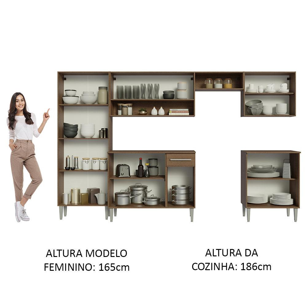 Procurando por uma cozinha espaçosa, moderna e funcional? Então confira este armário de cozinha completa da linha Emilly da Madesa.Possui balcões, armários e um paneleiro, todos avulsos, podendo ser organizados conforme a necessidade do seu ambiente. Além disso, possui espaço interno ideal para a organização de utensílios, louças, eletros e muito mais.Os materiais utilizados na fabricação são de ótima qualidade, focados na durabilidade do seu móvel. Conta com puxadores com detalhe em alumínio, corrediças metálicas na gaveta e dobradiças metálicas em todas as portas.Os pés da cozinha são em PVC, pensados para facilitar a limpeza e com regulagem para pequenas imperfeições no piso. Para completar, acompanha tampo em MDP para ambos os balcões.O acabamento combina os tons amadeirado Rustic e branco, feito em Pintura Poliéster ecológica com 7 camadas de proteção contra os efeitos da água e do calor.Medidas totais:- 186 cm de altura- 293 cm de largura- 44 cm profundidade nos balcões e 27 cm nos aéreosItens inclusos:- Um (1) Armário Aéreo de 64 cm com duas (2) portas- Um (1) Balcão de 64 cm com duas (2) portas e tampo- Um (1) Armário Aéreo de 164 cm com duas (2) portas e dois (2) nichos- Um (1) Balcão de 105 cm com três (3) portas, uma (1) gaveta e tampo- Um (1) Paneleiro de 65 cm com quatro (4) portasCódigo do produto: XAGREM2930019BObs.:- Imagens meramente ilustrativas: a decoração não acompanha o produto- A Madesa não disponibiliza serviço de montagem- Por segurança, é necessário fixar o paneleiro na parede- O produto segue com manual e todas as ferragens necessárias para a instalação1 – O produto vem montado? Se não, vocês realizam a montagem?R.: A Madesa não disponibiliza serviço de montagem. Todos os produtos seguem com manual de instalação e as ferragens necessárias. Alguns produtos possuem vídeo explicando o passo a passo da montagem.2 – Vocês possuem loja física? Posso retirar meu produto em mãos?R.: Não possuímos loja física, apenas loja virtual. Confira as opções de envio ao colocar o seu CEP.3 – Qual é o valor do envio? Posso pagar separadamente?R.: O valor do envio é calculado com base no peso e volume do produto, e no CEP de destino. Você pode calcular o valor e prazo de entrega no simulador.4 – A Madesa entrega em todo Brasil? Como é feita a entrega?R.: Sim, entregamos no Brasil inteiro através de transportadoras parceiras.5 – Os produtos possuem garantia?R.: Sim. A Madesa oferece 3 meses de garantia para defeitos de fabricação.A Madesa se dedica à sustentabilidade com várias iniciativas: temos uma usina própria para gerar energia que abastece uma de nossas fábricas. Selecionamos nossos fornecedores, priorizando aqueles que possuem um compromisso com a sustentabilidade e proteção do meio ambiente. Todo o plástico utilizado no setor produtivo é proveniente de reciclagem e as suas sobras são encaminhadas ao fornecedor que os recicla. Também investimos no desenvolvimento contínuo de nossos colaboradores e em ações educacionais que beneficiem a comunidade.