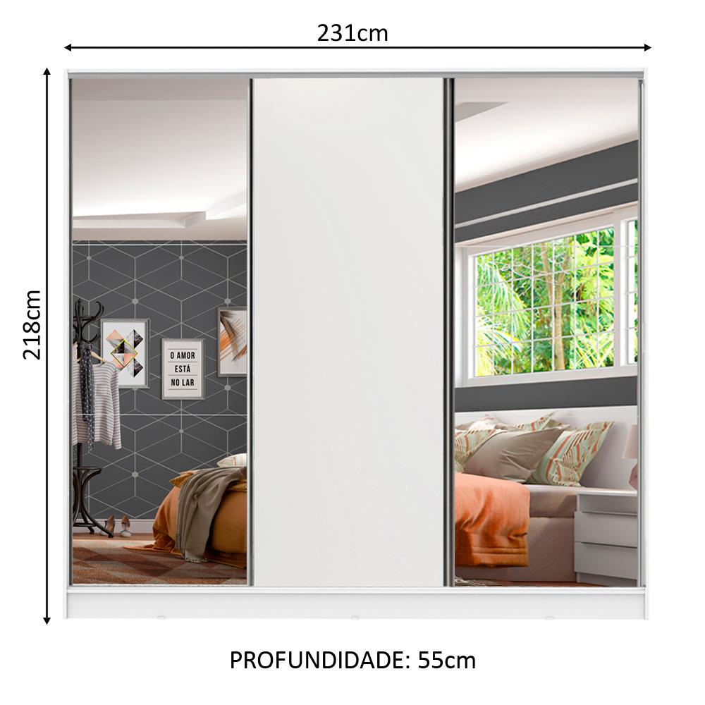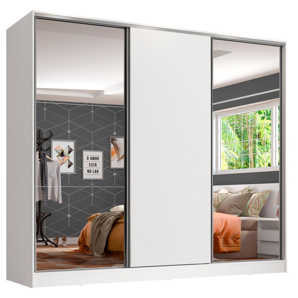 Guarda Roupa Juvenil 100% MDF Madesa Kevin 3 Portas de Correr com Espelhos - Branco