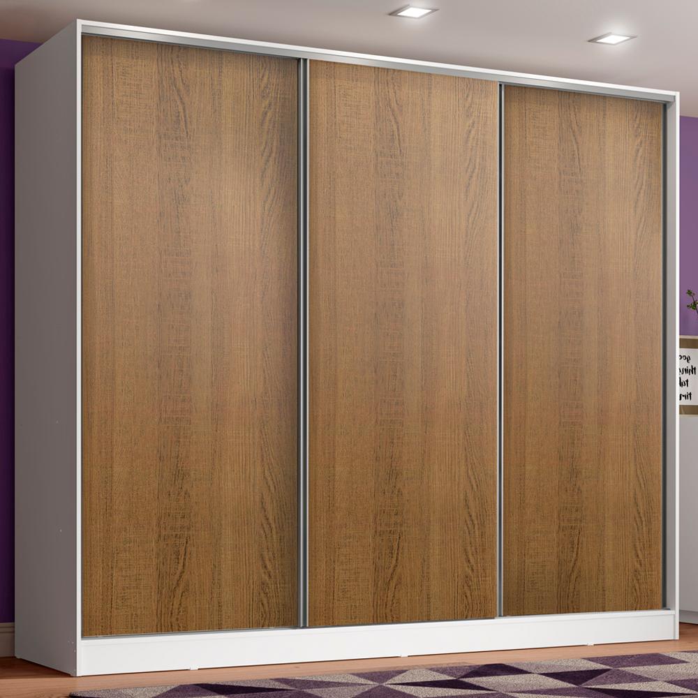 Guarda Roupa Juvenil 100% MDF Madesa Kevin 3 Portas de Correr - Branco/Rustic