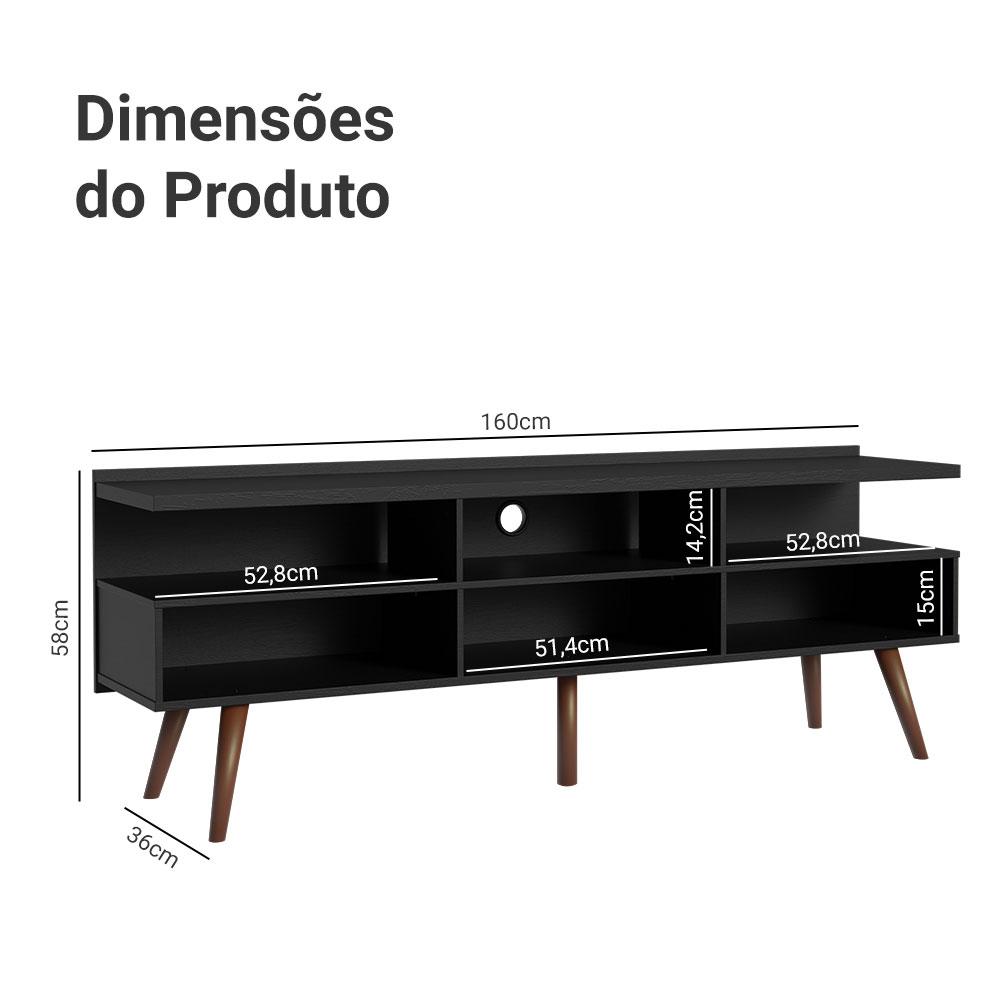 Transforme sua sala de estar com o Rack para TV Madesa Londres, perfeito para TVs de até 65 polegadas. Com um design moderno e funcional, ele combina elegância com praticidade, tornando-se o destaque ideal para a sua decoração.Principais características:- Ideal para TVs grandes: Suporte robusto e design pensado para TVs de até 65 polegadas- Acabamento preto de alta resistência: Proporciona maior durabilidade e proteção contra desgaste, mantendo o móvel com aparência impecável por mais tempo- Design retrô: Os pés em madeira maciça agregam firmeza, resistência e um charme vintage que enriquece qualquer decoração- Espaço versátil: Com prateleiras abertas e compartimentos fechados, acomoda eletrônicos, livros, e itens decorativos com organização e estilo- Fácil montagem: Desenvolvido para montagem prática e recomendada para duas pessoasMedidas:- 58 cm de altura- 160 cm de largura- 36 cm de profundidadeO que você recebe?- Um (1) Rack para TV- Manual de montagem e as ferragens necessáriasCódigo do produto:XB60028N1CPCÉ bom saber:- Imagens meramente ilustrativas- A Madesa não disponibiliza serviço de montagemA Madesa se dedica à sustentabilidade com várias iniciativas: temos uma usina própria para gerar energia que abastece uma de nossas fábricas. Selecionamos nossos fornecedores, priorizando aqueles que possuem um compromisso com a sustentabilidade e proteção do meio ambiente. Todo o plástico utilizado no setor produtivo é proveniente de reciclagem e as suas sobras são encaminhadas ao fornecedor que os recicla. Também investimos no desenvolvimento contínuo de nossos colaboradores e em ações educacionais que beneficiem a comunidade.