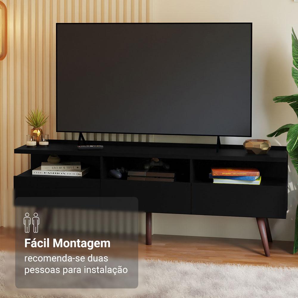 Rack para TV até 65 Polegadas com Pés Retro Preto Londres Madesa
