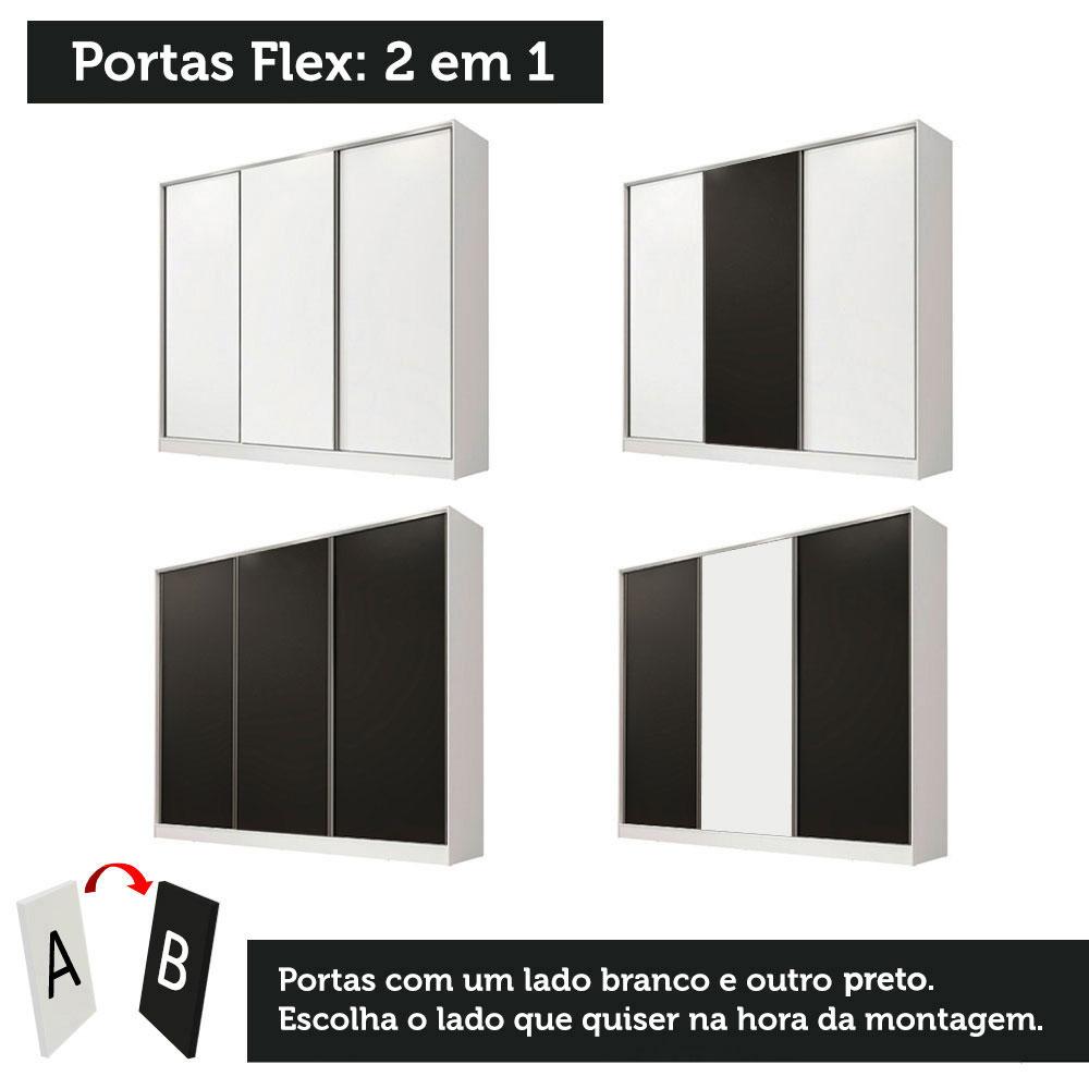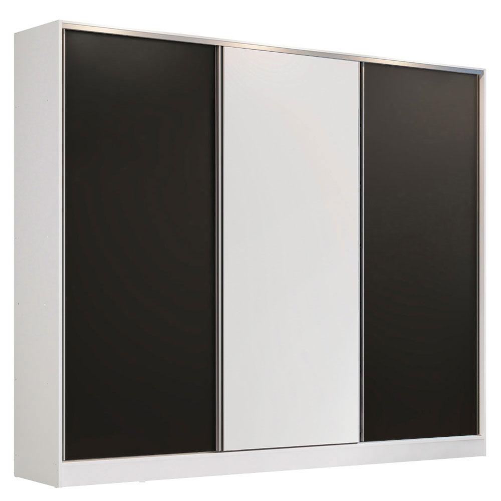 Guarda Roupa Casal 100% MDF Madesa Zurique 3 Portas de Correr - Branco/Preto/Branco