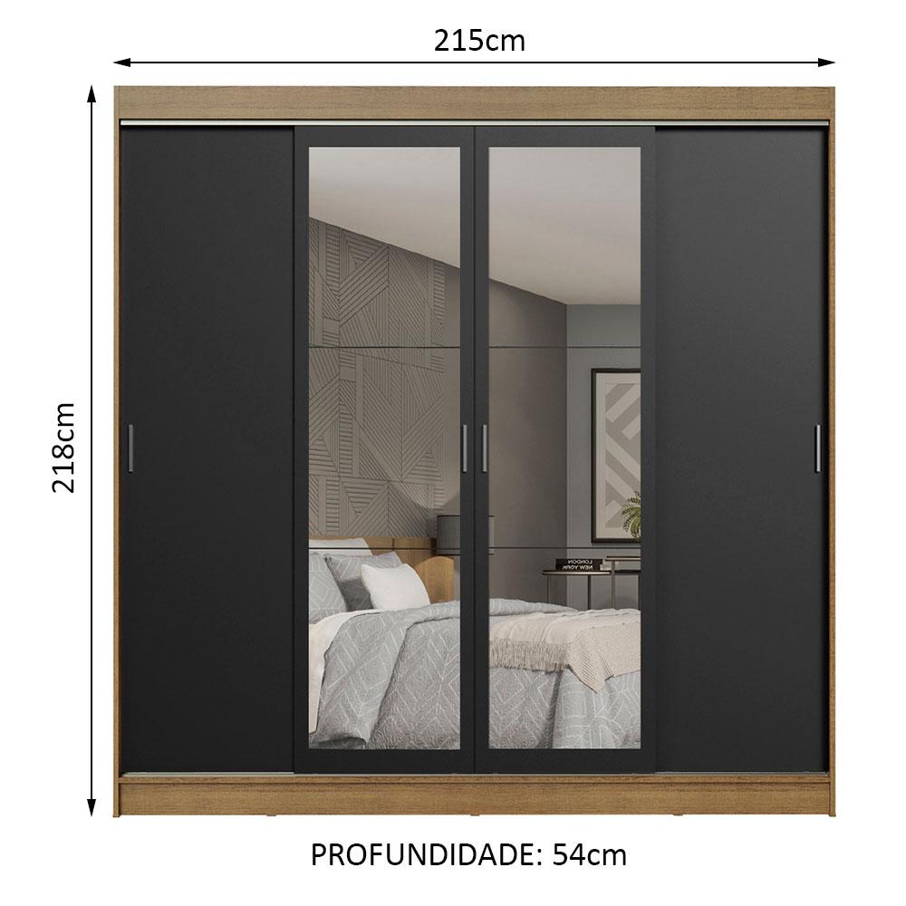 Guarda-Roupa Casal Madesa Austin 4 Portas de Correr com Espelhos 3 Gavetas R
