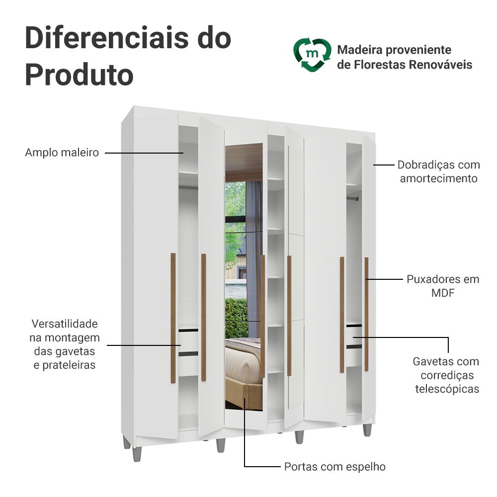 Guarda-Roupa Casal com Pés 6 Portas Batentes com Espelho Saturno Madesa