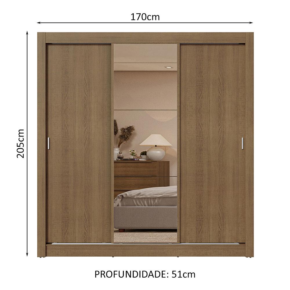 Guarda-Roupa Casal 3 Portas de Correr com Espelho 2 Gavetas Sublime Madesa