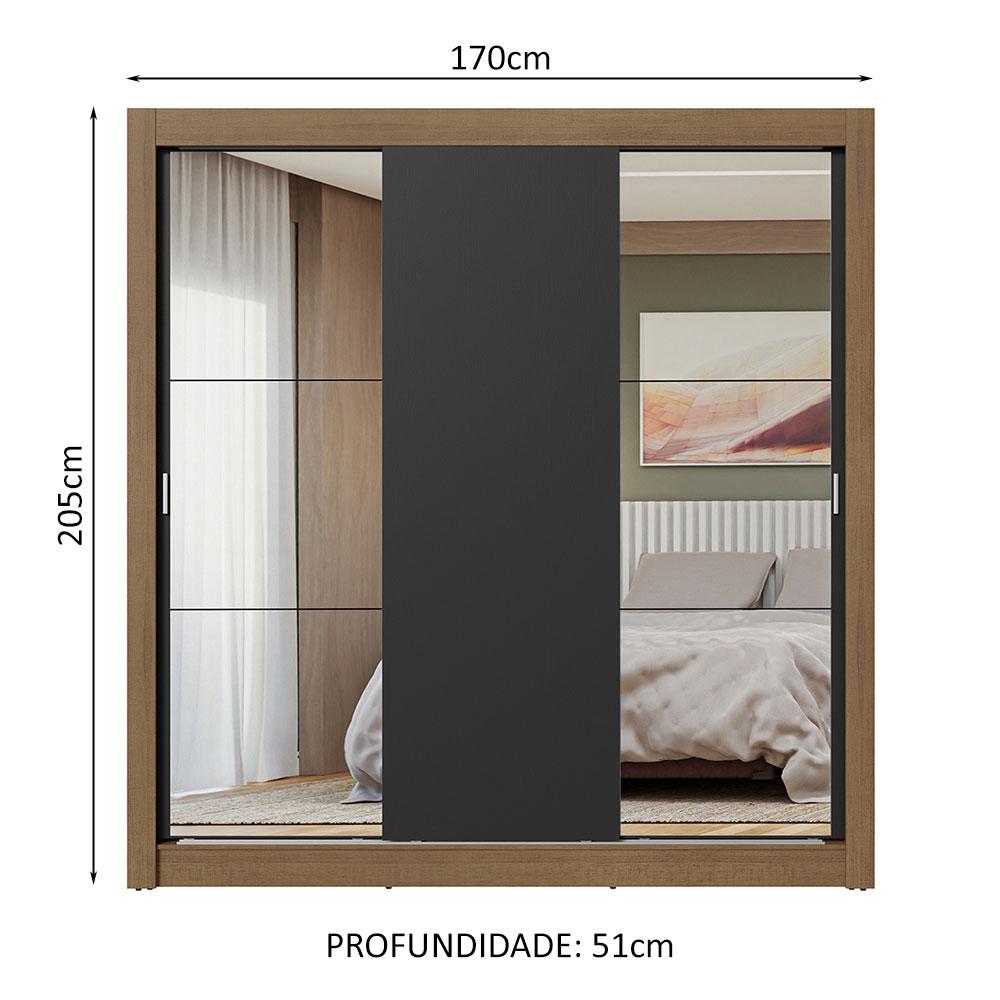 Guarda-Roupa Casal 3 Portas de Correr com Espelhos Nobre Madesa