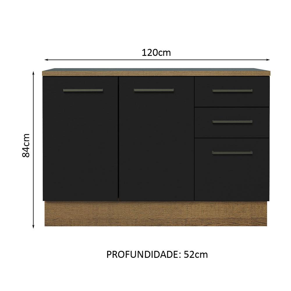 Balcão de Pia Cozinha 2 Portas e 3 Gavetas (Com Tampo) Rustic Agata Madesa