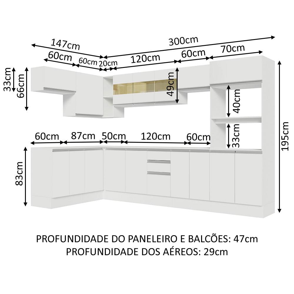 Armário de Cozinha Completa de Canto 100% MDF 447cm Smart Madesa 02