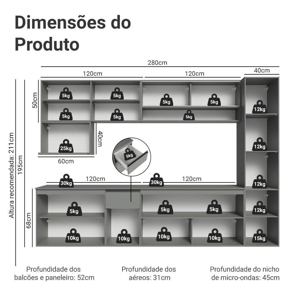 Armário de Cozinha Completa 280 cm Suspensa Nice Madesa 05