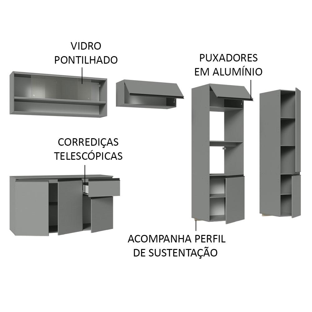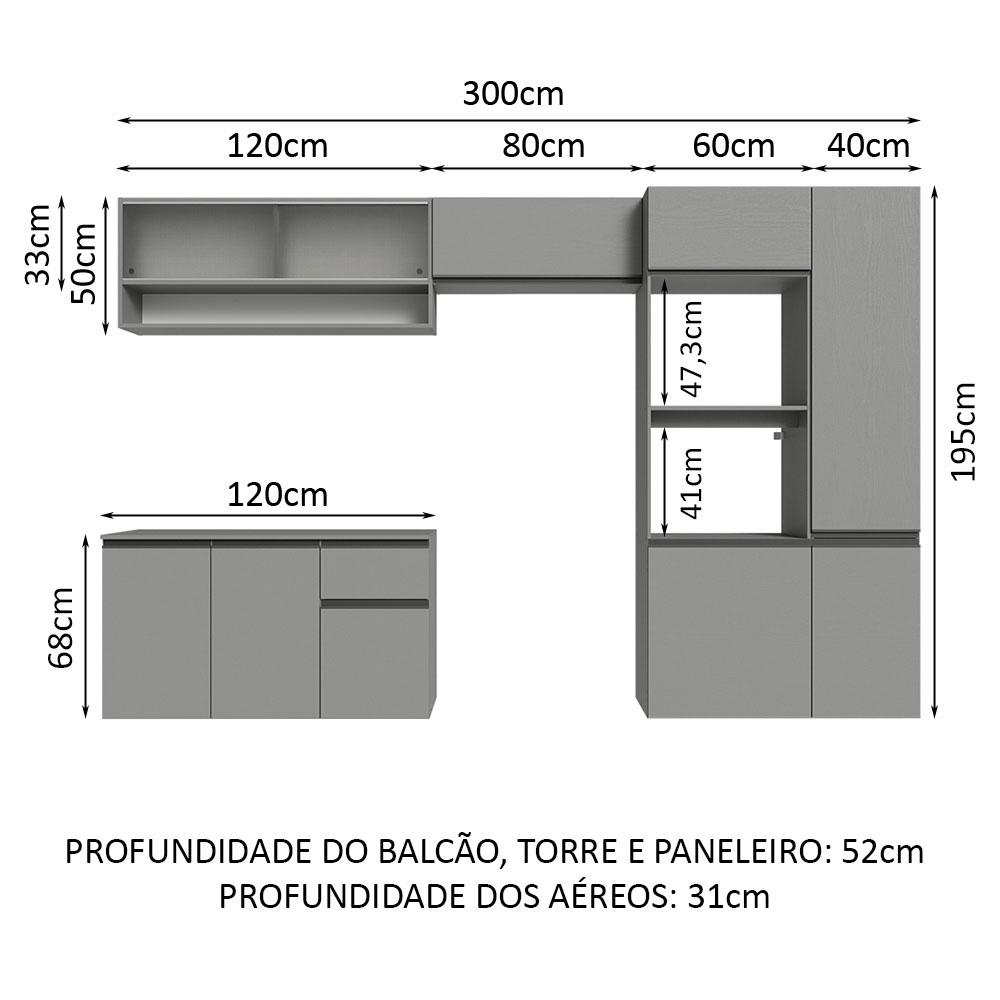 Armário de Cozinha Completa 300 cm Suspenso Nice Madesa 06