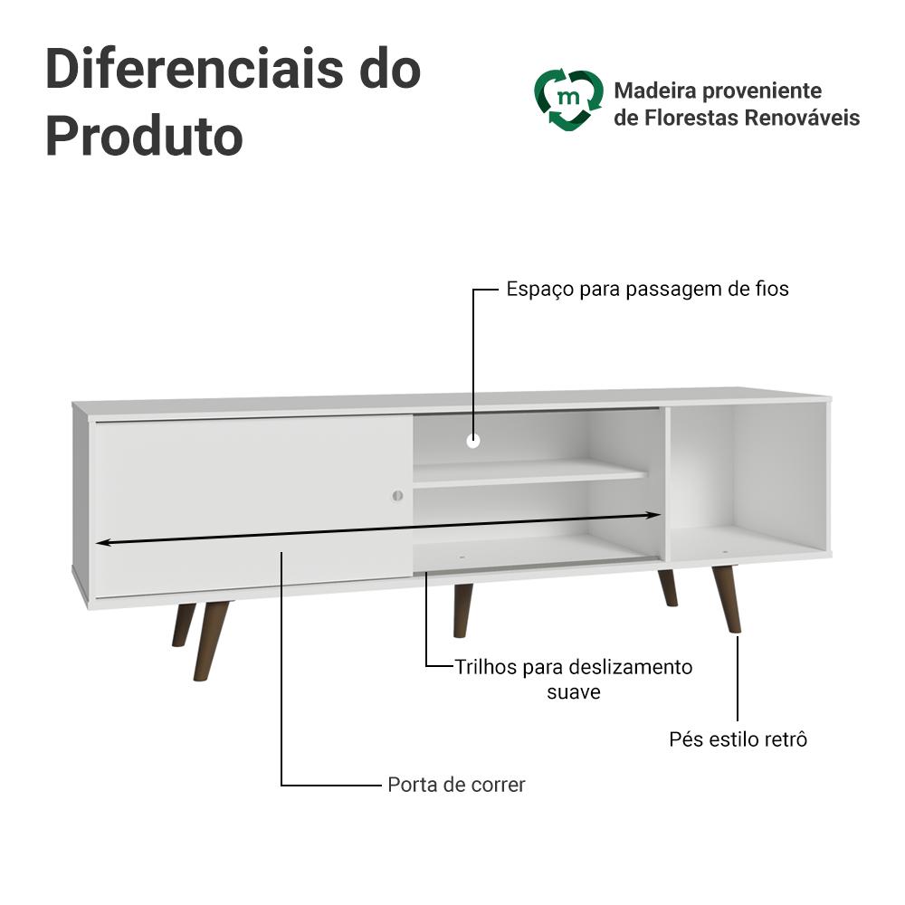 A sala de estar é o espaço da casa onde a gente relaxa e curte bons momentos. Por isso, vale investir em um móvel que una praticidade e elegância como o Rack Torino da Madesa.Inspirado no design contemporâneo, ele traz uma estrutura funcional e moderna, com três nichos de tamanhos variados e uma porta de correr. Ideal para acomodar eletrônicos, livros ou decorações.Na parte de trás, a abertura para passagem dos fios facilita a organização dos cabos. Os pés garantem charme e estabilidade. Um móvel funcional e cheio de charme — perfeito para renovar sua sala de estar.Medidas do produto montado:- 160 cm de largura- 39 cm de profundidade- 53 cm de alturaO que você recebe:- Um Rack para TV até 80 Polegadas com 1 Porta e 3 nichosCódigo do produto:XMMDES01000109XMMDES010001J5XMMDES0100015ZXMMDES010001N5É importante saber:- Material: MDP- Imagens meramente ilustrativas, a decoração não acompanha o produto- A Madesa não disponibiliza serviço de montagem- O produto segue com manual de instalação e todas as ferragens necessárias para sua montagemA Madesa se dedica à sustentabilidade com várias iniciativas: temos uma usina própria que gera energia para uma das fábricas. Priorizamos fornecedores responsáveis com o meio ambiente. Todo o plástico utilizado na produção é reciclado, e as sobras também são reaproveitadas. Investimos no desenvolvimento de nossos colaboradores e em ações que beneficiem a comunidade.