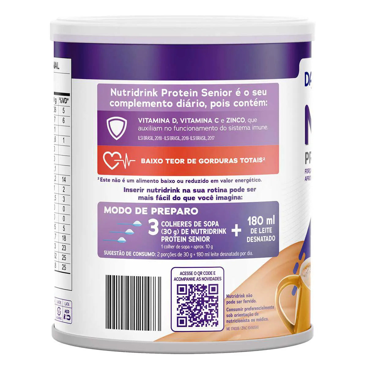 Para Que Serve:Nutridrink Protein Sênior é um complemento alimentar rico em proteínas que ajudam na saúde dos músculos e ossos, e fonte de vitaminas que auxiliam na imunidade. Pode ser incluído na rotina de adultos a partir de 50 anos que buscam um aliado com nutrientes que auxiliam a ter mais saúde e disposição. Indicado para nutrição oral, não tem adição de açúcares e ainda conta com baixo teor de gorduras.Modo de Usar:Para preparar, adicione 5 colheres de sopa (aprox. 50g) de Nutridrink em 170 ml de leite desnatado e misture bem até completa dissolução. Nutridrink não pode ser fervido.