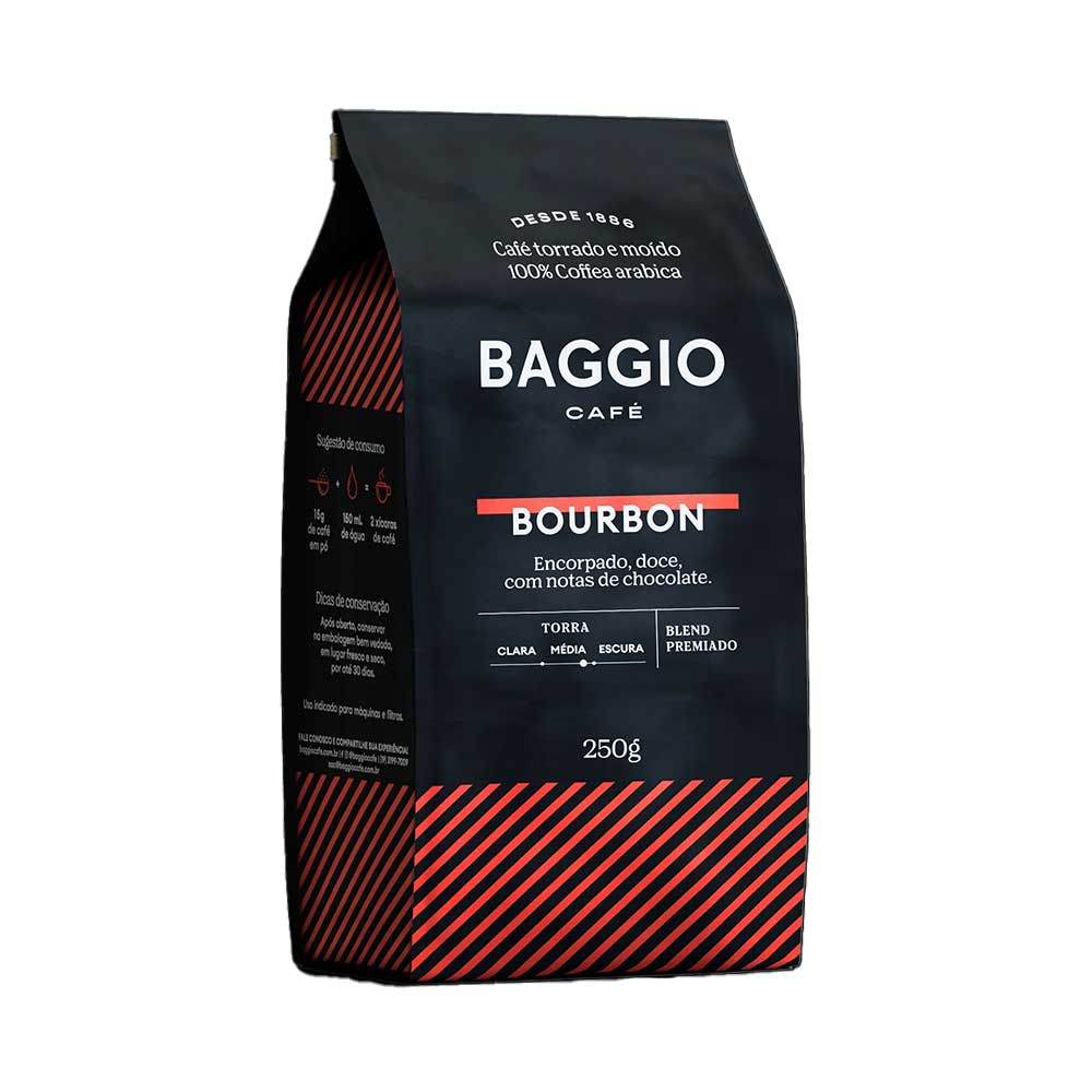 O Baggio Café Especial Bourbon é um café especial artesanal. Torrado artesanalmente, possui um paladar definido, com acidez sutil, ideal para apreciadores dessa variedade. Apresenta notas gustativas marcantes, corpo e doçura muito presentes.