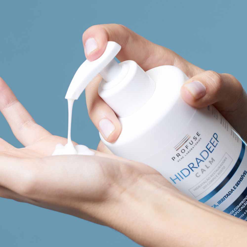 Hidradeep Calm é uma loção hidratante reparadora formulada para atender às necessidades específicas de peles que sofrem com ressecamento extremo, irritação e sensibilidade.