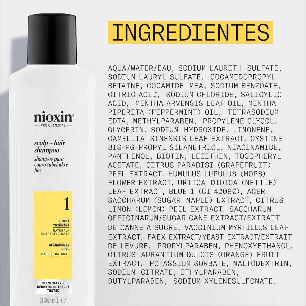 O Shampoo de Limpeza de Nioxin é a primeira etapa do tratamento de 3 partes desenvolvido para fortalecer o cabelo e ampliar sua estrutura contra afinamento.